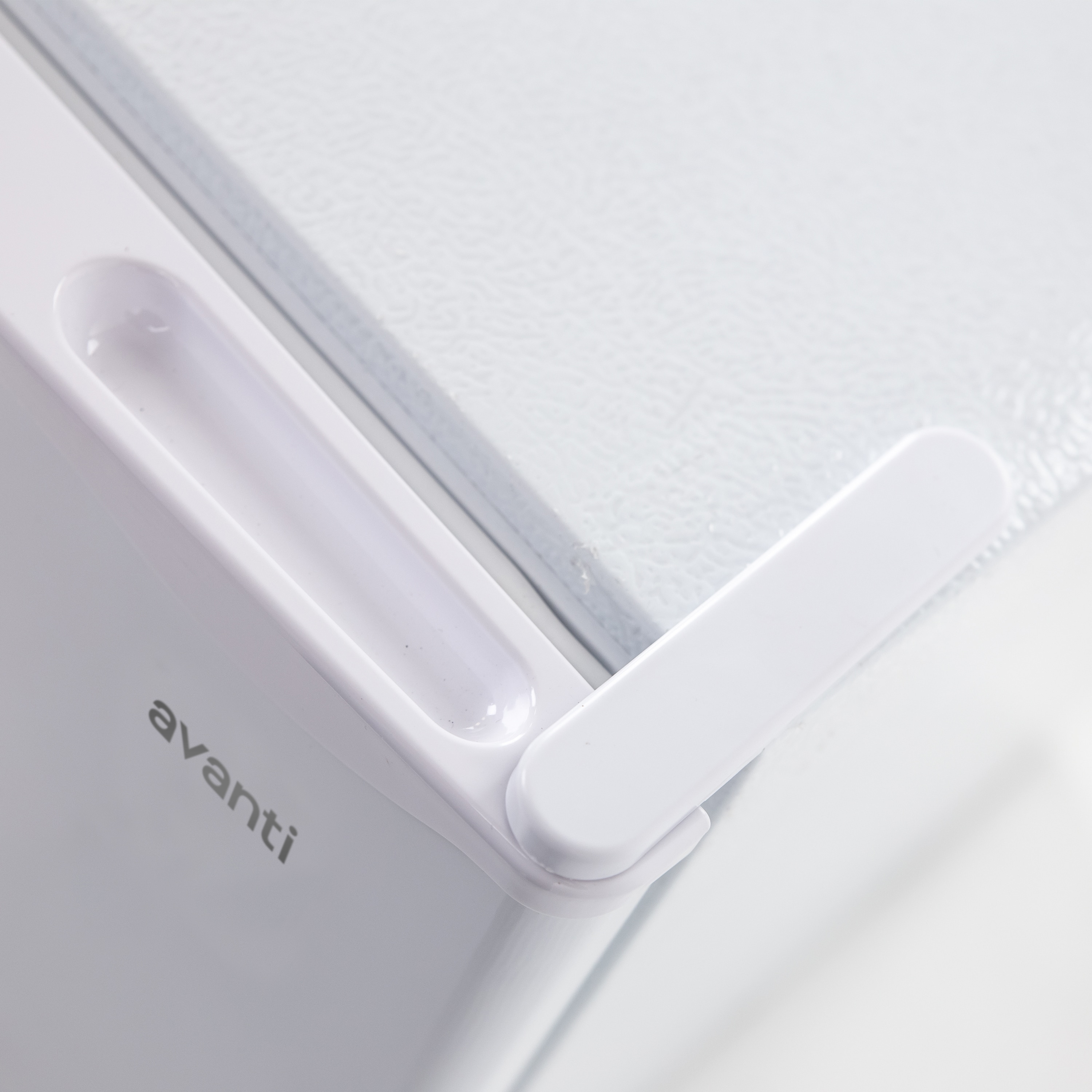 Meet your new go-to appliance: the Avanti 1.6 Cu. Ft. Compact Refrigerator, perfectly designed for those snug spaces in your life—whether it’s your office, dorm room, or bedroom, this versatile appliance combines convenience and efficiency. The Avanti mini fridge is designed to maximize space efficiency without compromising on performance. With a 1.6 cu. ft. capacity, it offers ample storage for your drinks, snacks, and small food items. The refrigerator features a convenient 2-liter bottle storage on the door, making it easy to grab your favorite beverages. The separate chiller compartment is perfect for storing items that require quick cooling, ensuring they stay fresh longer. The removable wire shelf allows you to customize the interior layout to suit your needs. Equipped with full range temperature control, you can easily adjust the settings to keep your contents at the optimal temperature. The manual defrost feature simplifies maintenance, keeping your refrigerator running smoothly. The space-saving recessed door handle adds a stylish touch to the overall design. The reversible door gives you the flexibility to set the door swing to either the left or right, depending on your space layout. Additionally, this compact refrigerator is ENERGY STAR certified, indicating its energy-efficient operation that helps reduce energy costs. For added peace of mind, this Avanti refrigerator is backed by a 1-year manufacturer limited warranty. Elevate your cooling experience with the Avanti 1.6 Cu. Ft. Compact Refrigerator, the perfect blend of convenience, efficiency, and style.