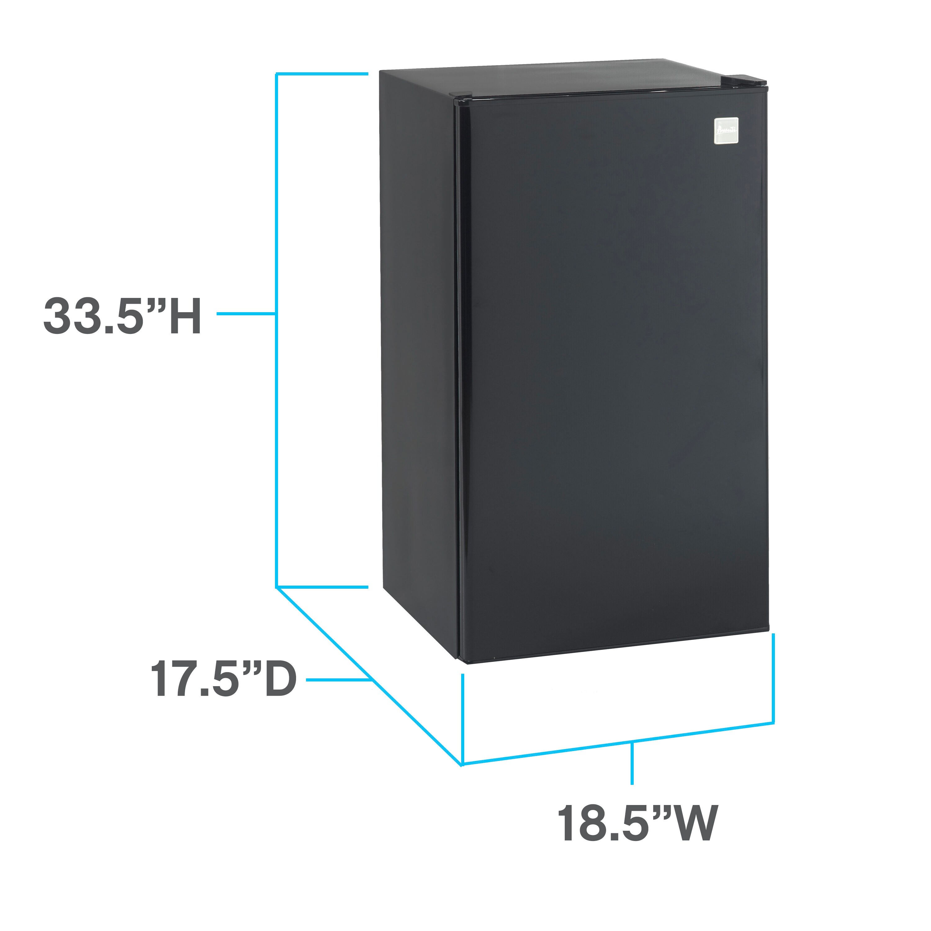 Keep your snacks and favorite beverages close by in the 3.3 cubic foot refrigerator from Avanti. The perfect mini fridge for the office, dorm, man cave, she-shed, bar, bedroom, or anywhere you need a little extra refrigerator space. The adjustable door bins can accommodate 2 liter bottles as well as other drinks and condiments. Use the adjustable glass shelves to arrange salads, fruits, snacks, and other food for easy access throughout the day. This fridge features manual defrost, so your food and beverages remain fresh and cold. Select the right settings for your items with the full range temperature control.