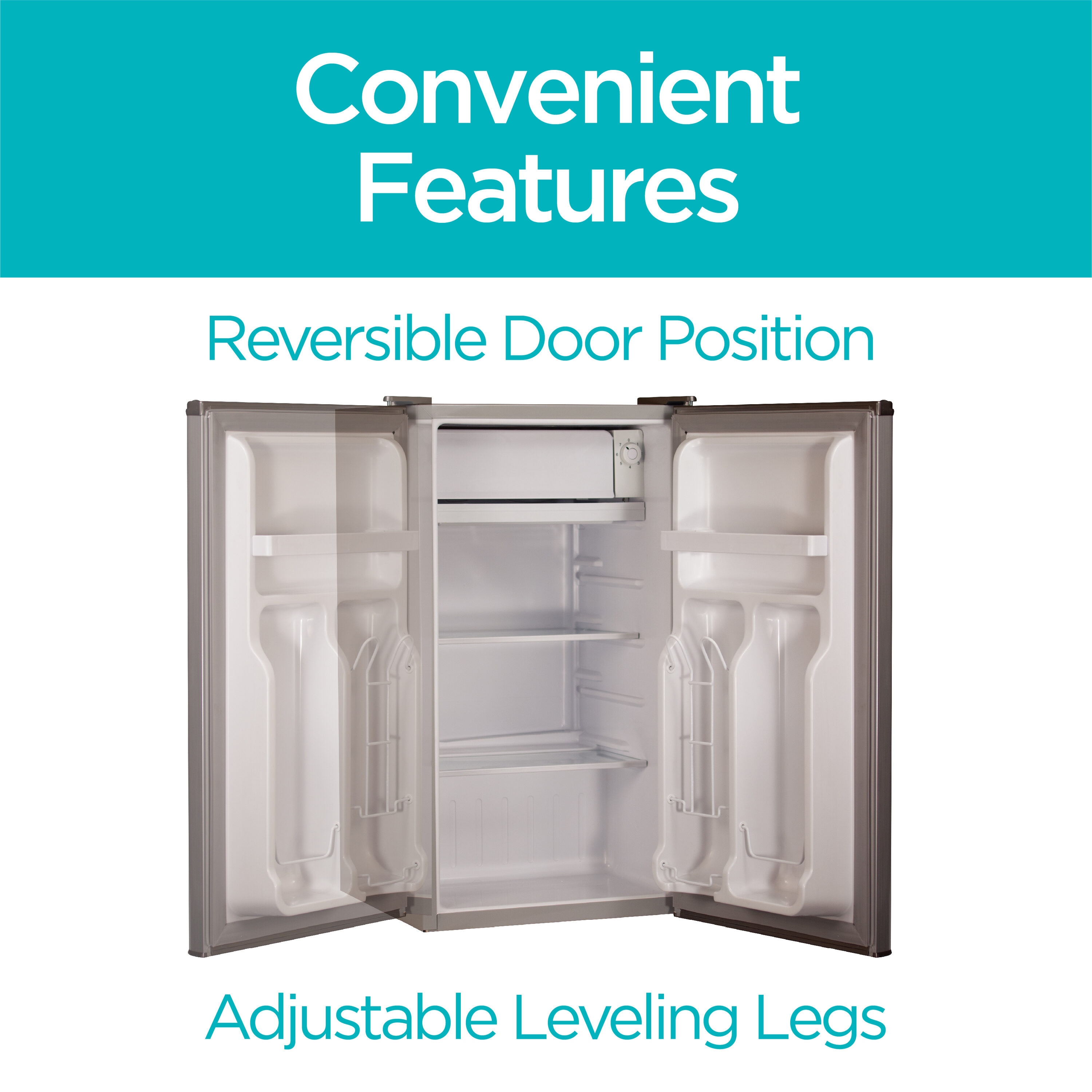 This BLACK+DECKER BCRK32 3.2 cubic Feet energy star compact fridge is a true space saver for places like a studio apartment, tiny house or home office. Adjustable, removable shelves allow you to customize the interior. The inside of the door is perfect to hold both bottles and cans of your favorite beverage. The freezer compartment also means you’ll have a place for your ready-to-eat frozen meal and a pint of your favorite ice cream for dessert.