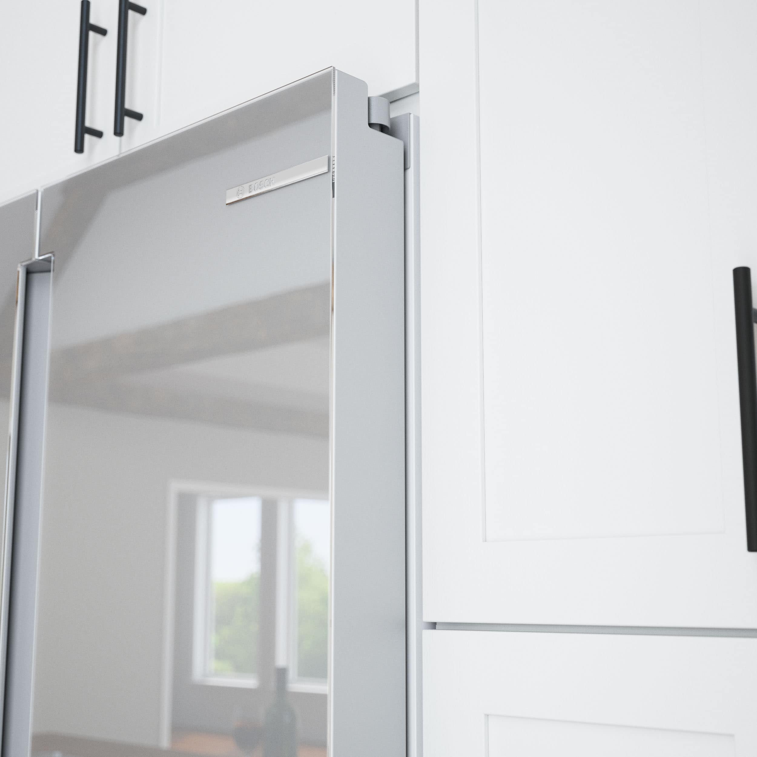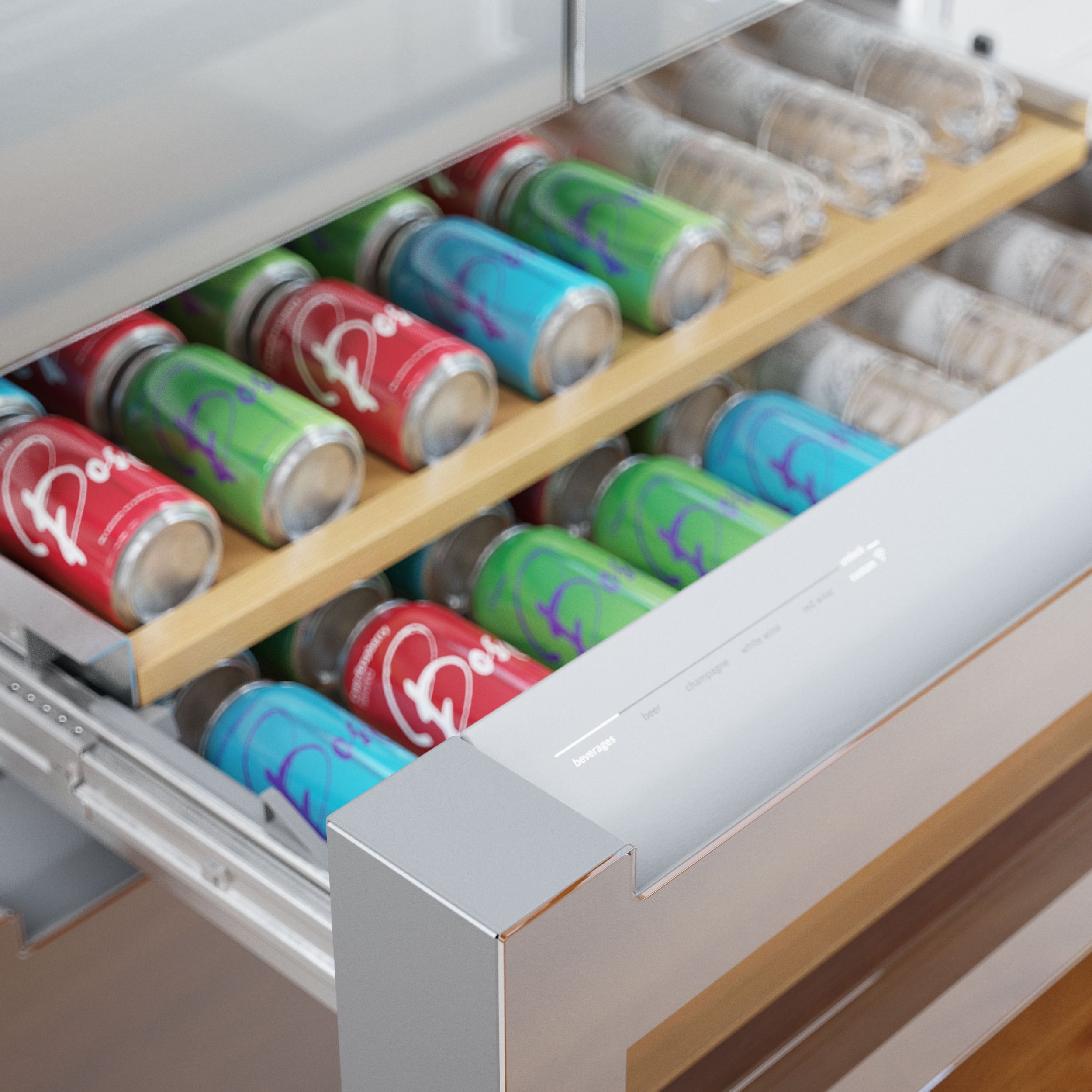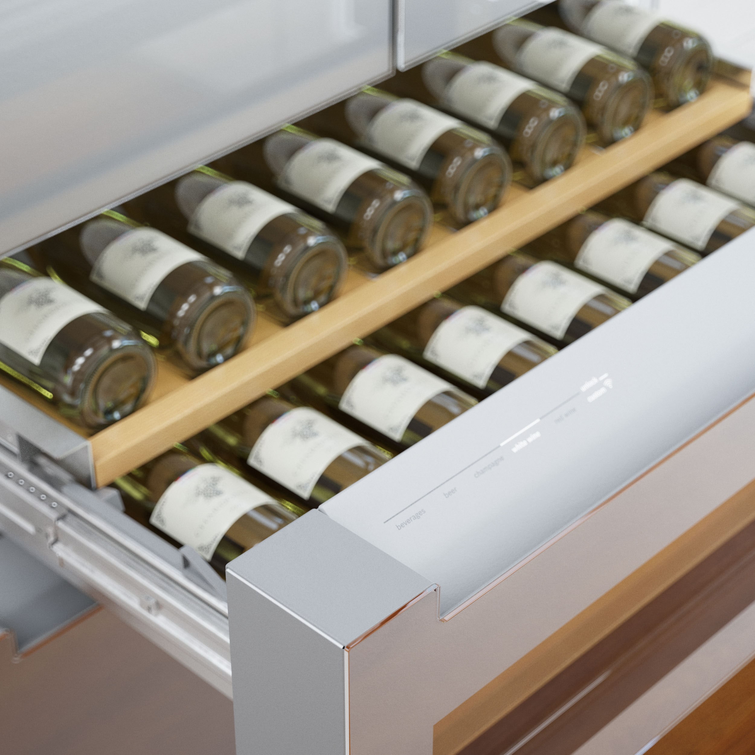 The new Bosch Refreshment Center refrigerator features an easy-to-clean glass over stainless steel exterior with a glass display drawer that holds up to 17 standard wine bottles or 35 standard beverage cans. Pre-programmed settings take the guesswork out of finding the optimal temperature. From craft beer and wines, to champagne, juice, and other beverages. Plus, Home Connect lets you easily manage your Bosch refrigerator from the convenience of your smartphone or tablet.
