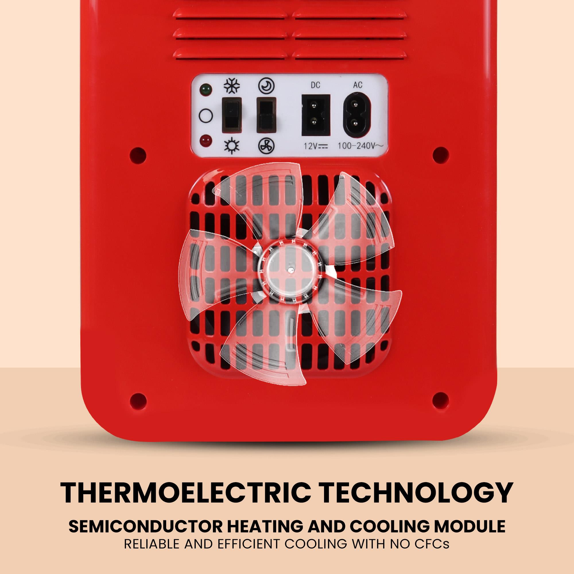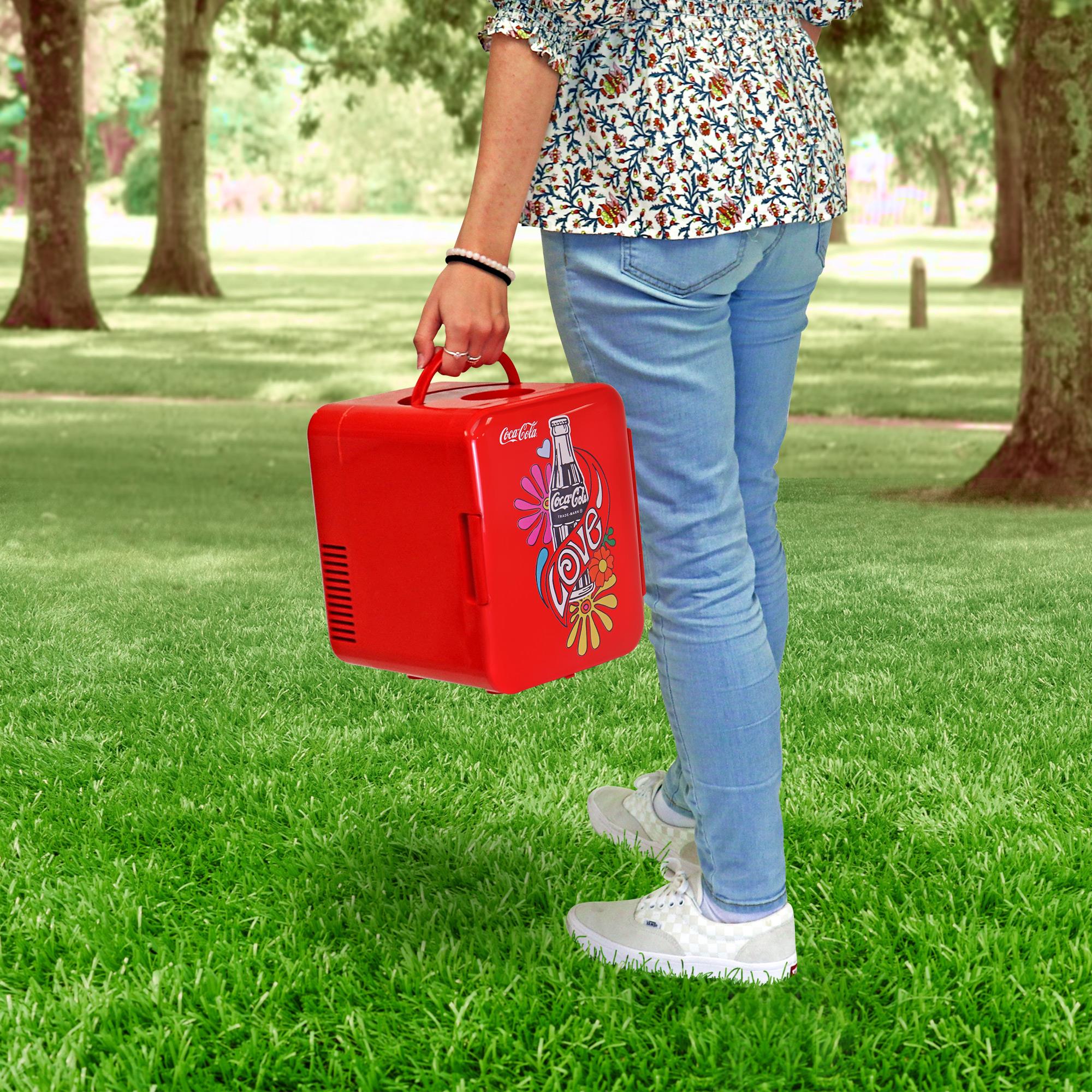 The Coca-Cola Vintage 4L mini fridge is a top-notch choice for Coca-Cola collectors worldwide! Ideal for home, nursery, office, or dorm room use, this compact mini fridge stands out as the ultimate desk accessory. With the capability to hold six (6) 12-ounce cans, its renowned thermoelectric cooling system excels in beverage cooling, while its noteworthy warming function adds to its versatility. Streamline your mornings by taking your breakfast on the go, or save money by packing a warm lunch to enjoy throughout the day with this Coca-Cola Vintage 4L mini fridge.