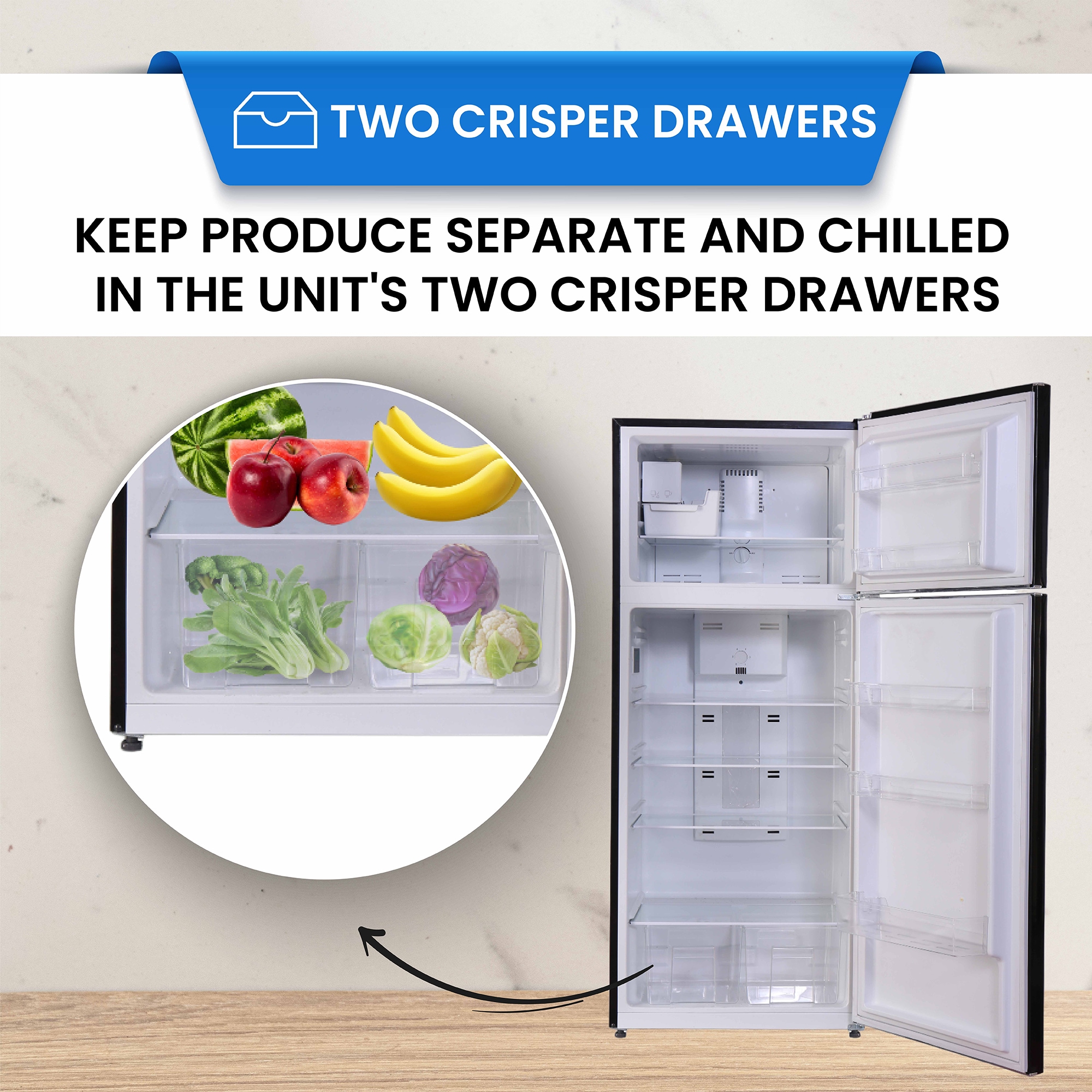 TWO CRISPER DRAWERS – Keep all produce items separate from other food items — and chilled at the right temperature — in the unit’s two crisper drawers.