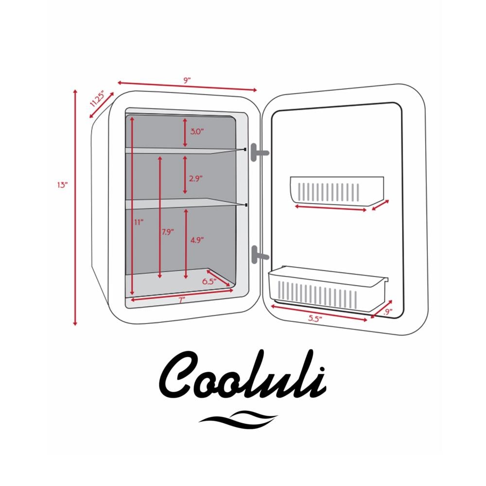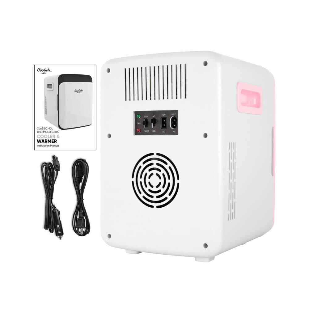 The Cooluli Classic 10-liter Thermoelectric Cooler/Warmer Mini Fridge is durable, efficient, and stylishly compact. The Classic 10-L features upgraded foam for better insulation and goes from cooling to warming with one quick switch. It’s perfect anywhere you need to store food, snacks, drinks, breast milk, insulin, skincare and beauty products, medications, and other essentials.NThe Classic’s handy, lightweight profile has a roomy 10-liter capacity and the molded inset handles on each side make carrying it a breeze. Fits up to twelve 12-oz. soda/beer/drink cans or sixteen 20-oz. bottles! The Classic-10L mini refrigerator is perfect in your home, countertop, business/office, dorm, hotel room, car/motor vehicle, or on your next road trip or tailgate party!NExclusive EcoMax Technology features a unique semiconductor operation that prevents frost, is quiet, energy efficient, and cost-effective—when maximum efficiency is reached, the Classic goes into ECOmode—saving you money! It’s 100% environmentally friendly and uses no refrigerants or Freons. The Classic-10L features a one-year limited warranty and Cooluli’s unparalleled customer service.
