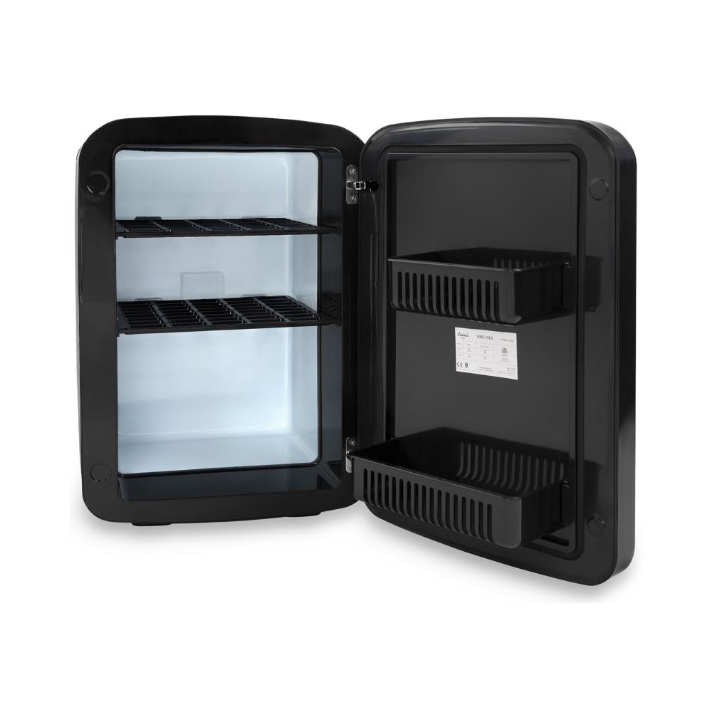 The Vibe-15LE Mini Fridge features a versatile, magnetic blackboard front which adds a new degree of cool to the standard mini fridge. The blackboard front adds a old-school vibe, while serving useful for writing lists/reminders. Use with regular chalk or liquid chalk markers (not included). Do not use with dry-erase pens/markers.NThe all-purpose Vibe is durable, efficient, and stylishly compact; change from cooling to warming with 1 quick switch. Perfect for storing food, drinks, breast milk, insulin, skincare and beauty products, medicine, and more.NThe compact design features a spacious 15-liter capacity, and molded foldaway top handle for easy portability. Fits up to 18 standard 12-oz. beverage cans! Use it everywhere—the Vibe’s sturdy construction and sleek look match any décor, making it the perfect addition to your home, office, dorm, hotel, car, and road trip!NExclusive EcoMax Technology features Cooluli’s unique cooling system that prevents frost, is quiet, energy efficient, and cost-effective. When maximum efficiency is reached, the Vibe goes into ECOmode—saving you money! The environmentally-friendly Vibe uses no refrigerants or Freons. It’s dual voltage and works worldwide. This unit features a 1 Year Limited Warranty and Cooluli’s unparalleled customer service.