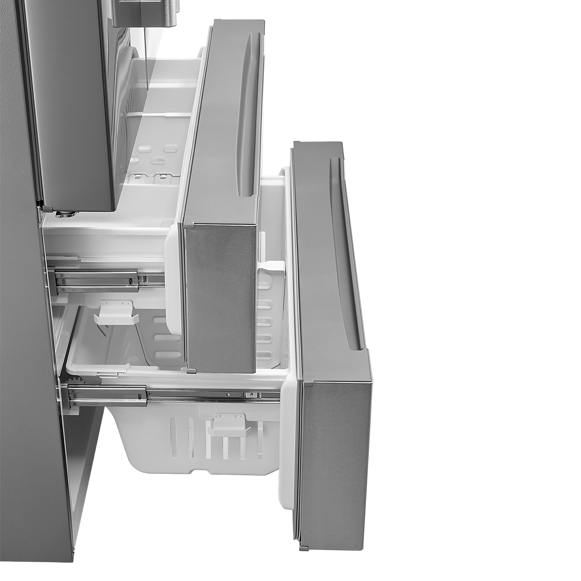 Two slide-out freezer drawers are designed to easily organize frozen food for easier accessibility so you are able to maximize storage