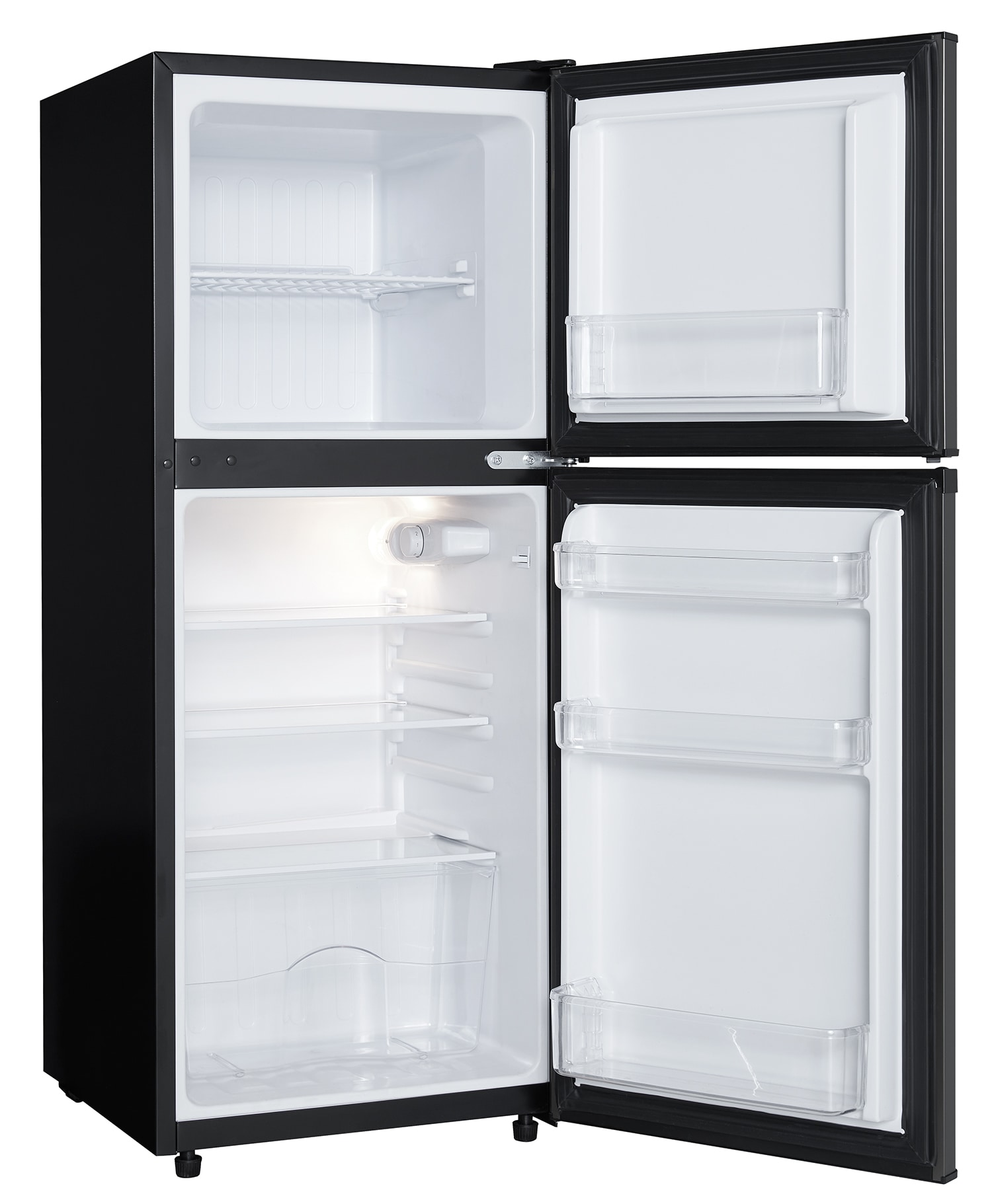 Danby’s 4.7 cu. ft. dual-door compact refrigerator/freezer is great for rec-rooms, offices, and more. This model offers a 3.2 cu. ft. cooling capacity and 1.5 cu. ft. freezing capacity with separate reversible doors for either left or right-handed opening. The mechanical thermostat ensures that your food is always stored at the correct temperature, and the freezer incorporates a manual defrosting system. Coveted features include bright interior lighting, 2 full-width glass shelves, a see-through vegetable crisper with a glass cover, and integrated door shelving for tall bottles.