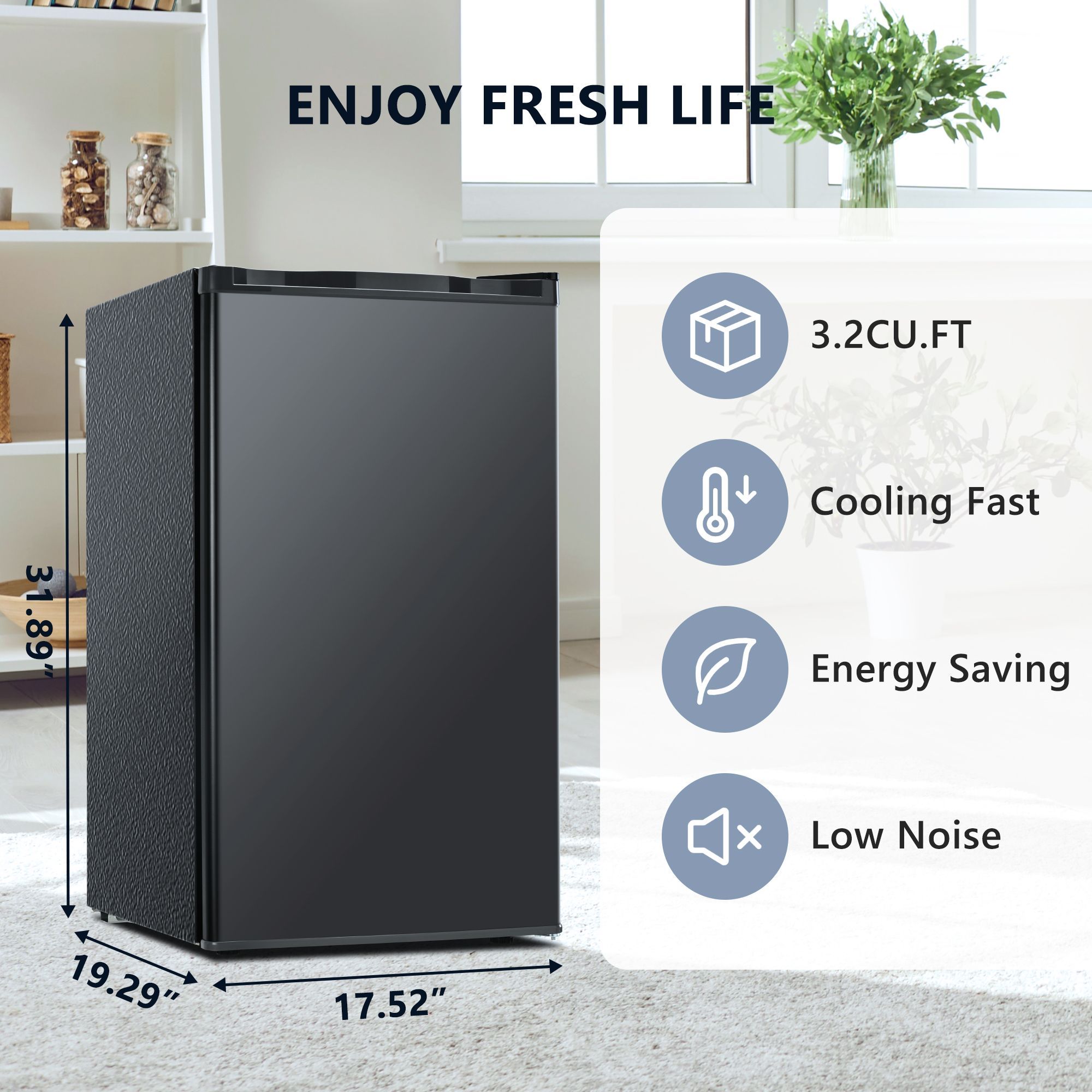 Single-Door Refrigerator, a perfect blend of style and functionality for your cooling needs. With a sleek black exterior, this compact refrigerator features a mechanical rotary knob with 7-settings for easy temperature adjustments, ensuring your food and beverages are always stored perfectly. It’s lightweight and durable, making it an ideal choice for dorms, offices, or small apartments. Upgrade your cooling experience with the refrigerator-where practicality meets modern design.