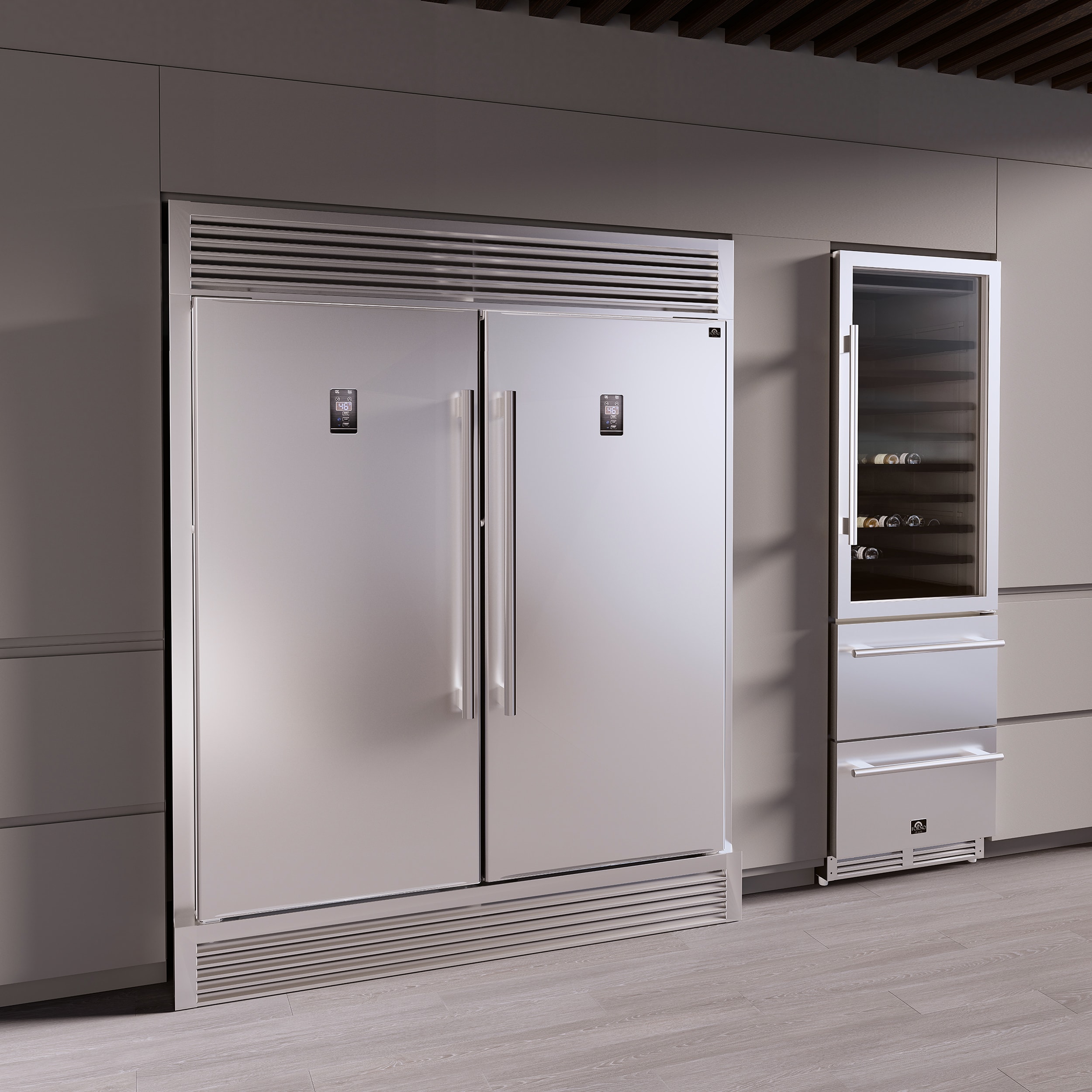 This 27.6 cu.ft. Refrigerator/Freezer Combo Unit is the perfect size for any kitchen, allowing you to store all of your refrigerated and frozen items. It features interchangeable refrigerator/freezer zones that make it easy to customize the temperature settings according to your needs. The Electronic Control feature allows you to easily adjust the temperature settings on the refrigerator or freezer with just a few simple clicks. The control has F to C temp conversion with LED readout of current setting and actual temp. Adjustable levelling legs feature allows you to easily accommodate and adjust the legs to tailor the refrigerator’s height to fit your needs. The Door Ajar Alarm feature of this refrigerator will alert you if one of the doors is accidentally left open, preventing energy waste and food spoilage. All Forno refrigerators are backed by an iron clad 2-year warranty for your satisfaction and an E-star energy rating. Skip the high price tags without sacrificing quality and performance. Lower the cost of living with Forno.