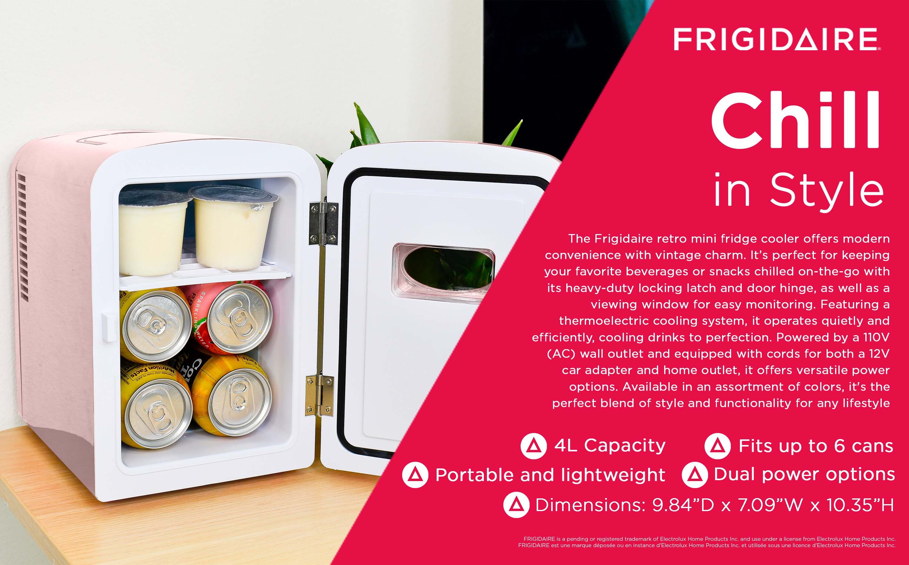Add a touch of vintage flair to your space with this compact retro mini cooler.