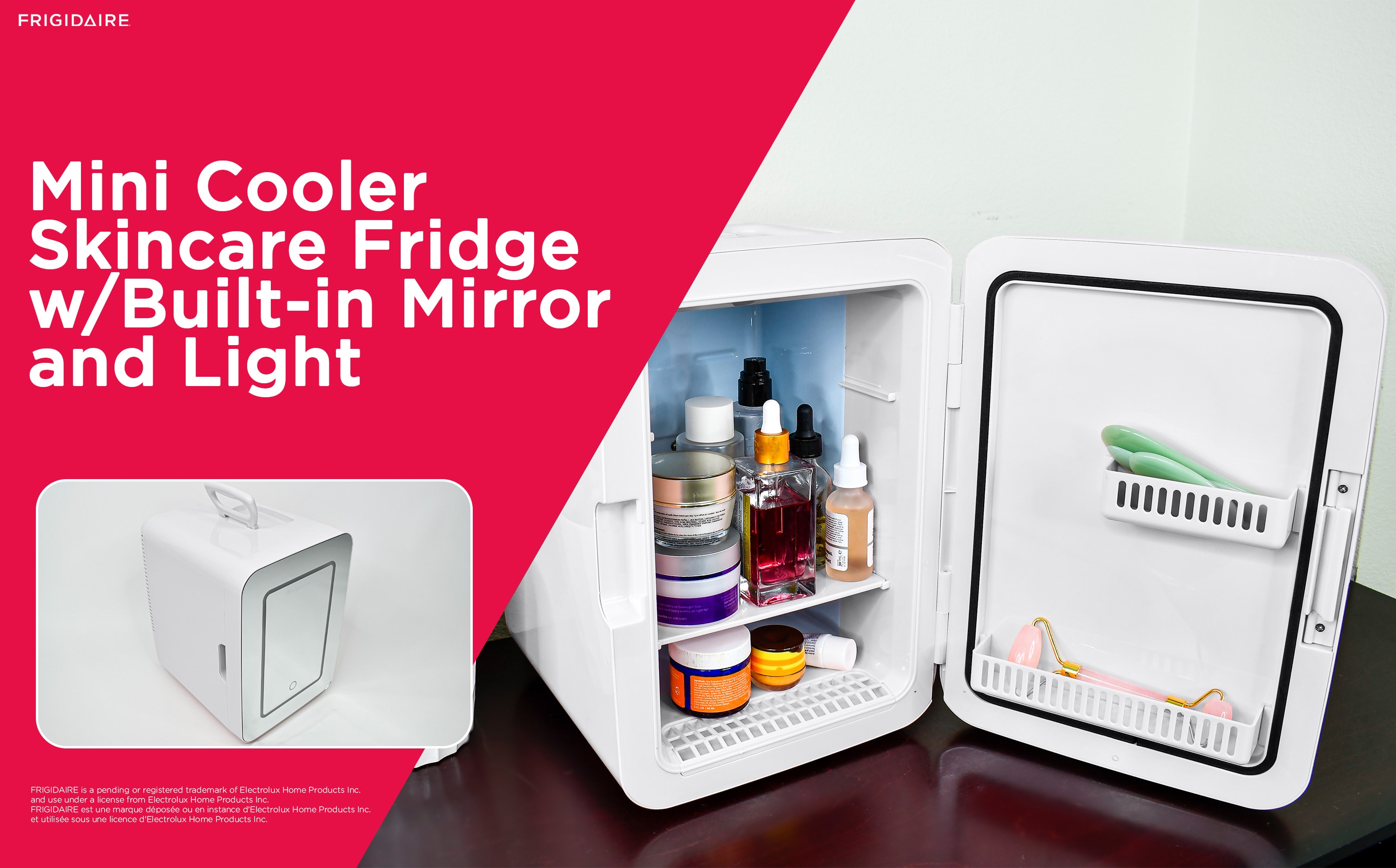 The 9 Can mini fridge with built-in lighted mirror is perfect for storing everything from dirnks and snacks to your favorite make-up keeping it fresh so it lasts longer. It’s the perfect accessory for that long road trip or camp out when you want a cold drink or a quick make-up touch up.