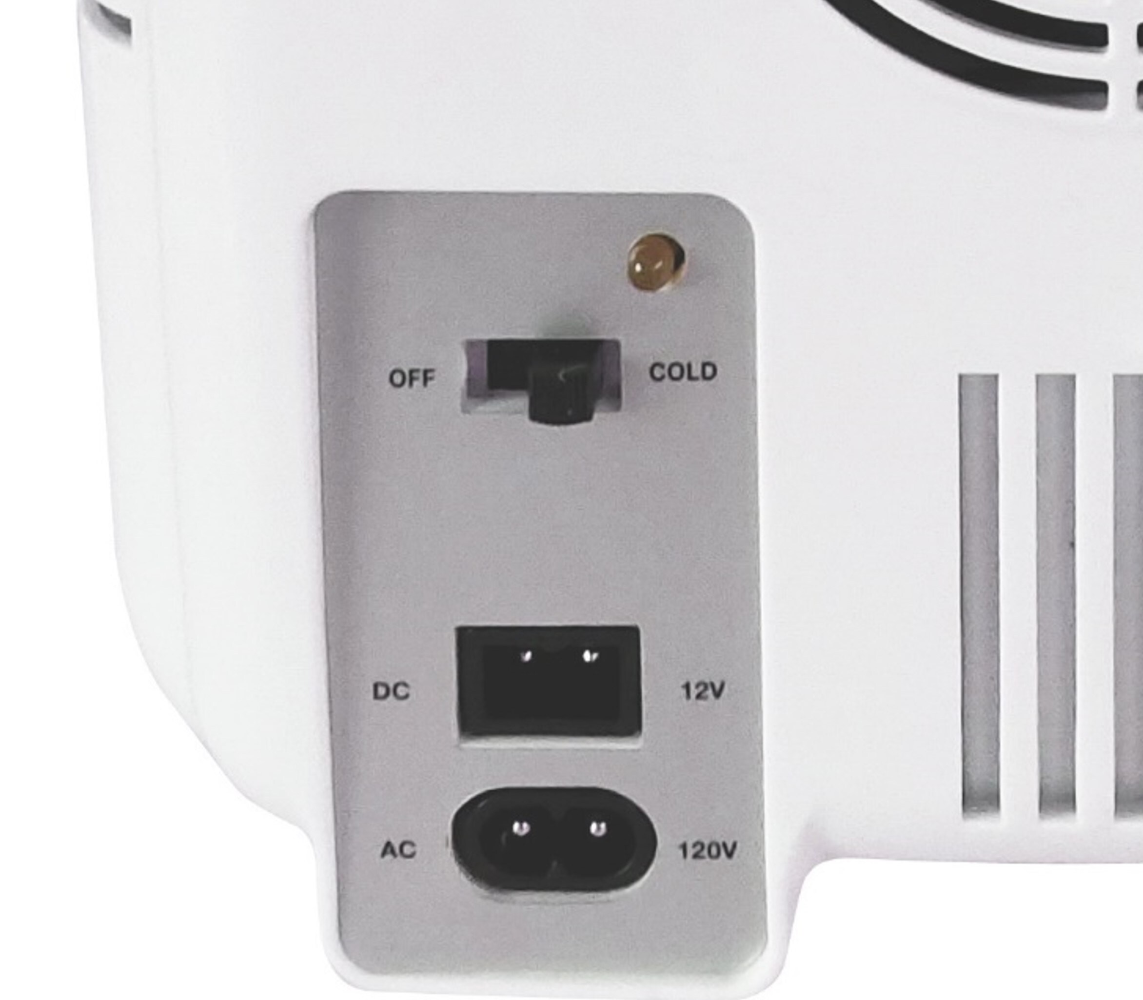 Stores up to 15 cans, powered by 110V AC wall outlet, cools up to 20 degrees F below ambient room temperature and also plugs into a 12V car adapter or home outlet.