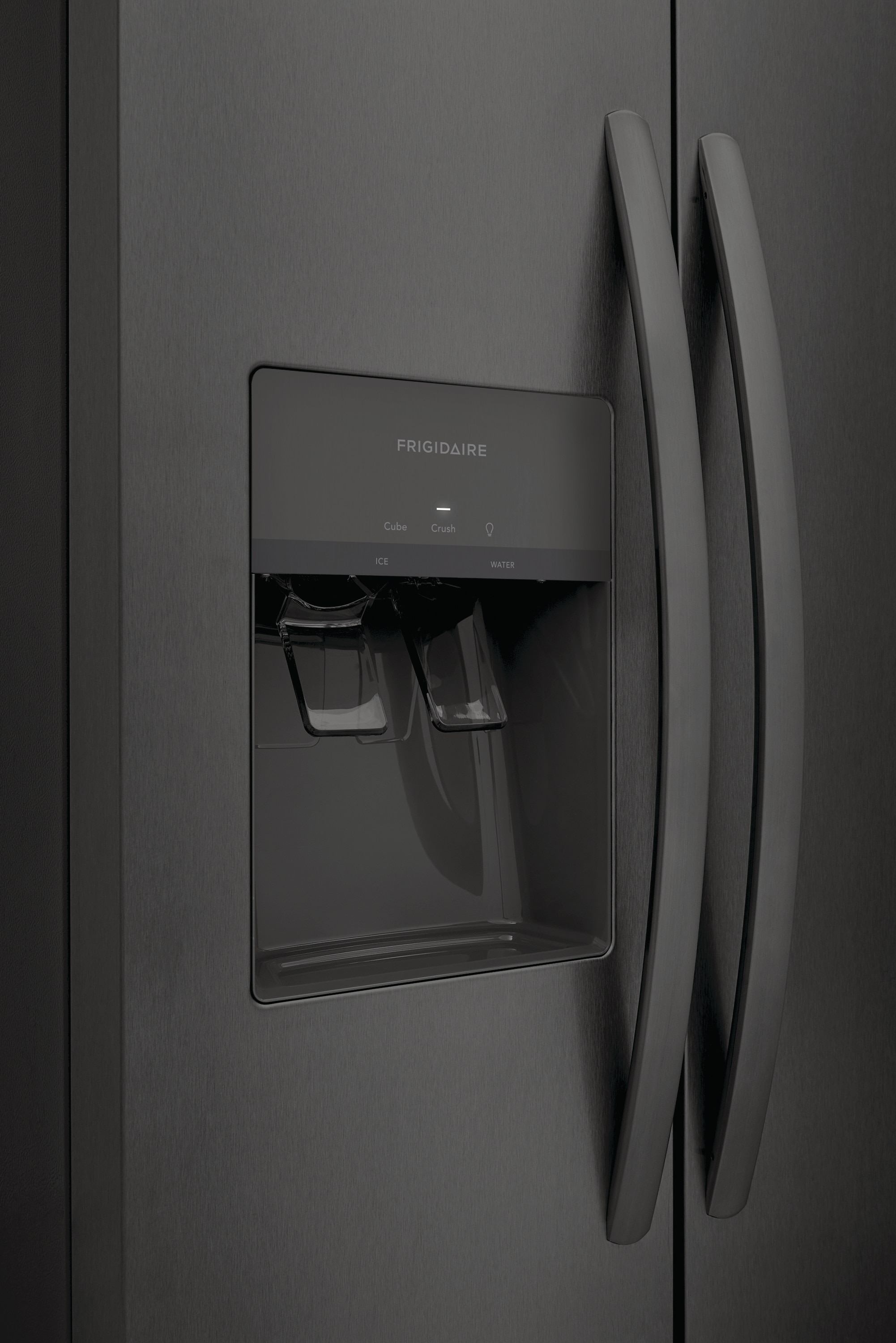 This Frigidaire 33-in side-by-side refrigerator offers our EvenTemp™ Cooling System which reacts quickly to temperature fluctuations and constantly circulates cold air throughout the fresh food and freezer compartments, ensuring a consistent cool from top to bottom. Keep fruits and vegetables fresh in our crispers that offer a seal to block out dry air. Find fresh foods quickly with our bright LED lighting.