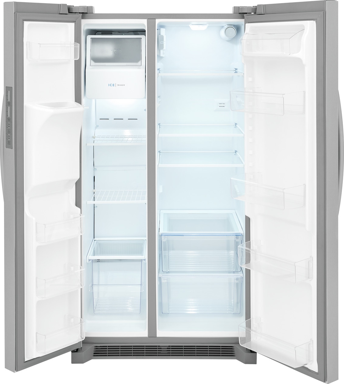 This Frigidaire 36-in side-by-side refrigerator offers our EvenTemp™ Cooling System which reacts quickly to temperature fluctuations and constantly circulates cold air throughout the fresh food and freezer compartments, ensuring a consistent cool from top to bottom. Keep fruits and vegetables fresh in our crispers that offer a seal to block out dry air. Enjoy the capacity to fit all of your family’s favorites and keep everything tidy with our flexible organization system that includes adjustable gallon door bins, removable glass shelves and two produce drawers. Awarded the Best Overall Side by Side Refrigerator of 2023 by Reviewed.com (USA Today).