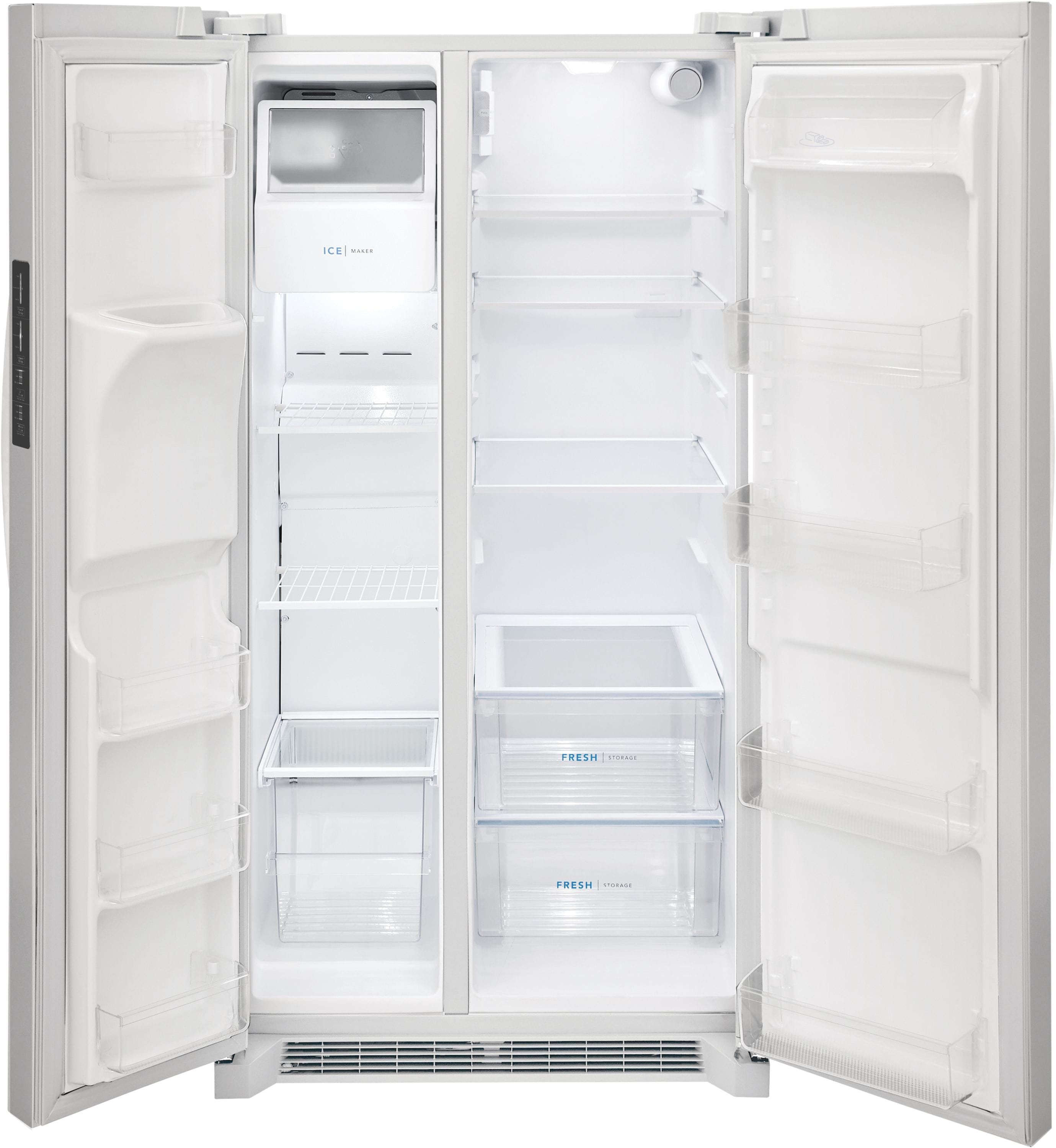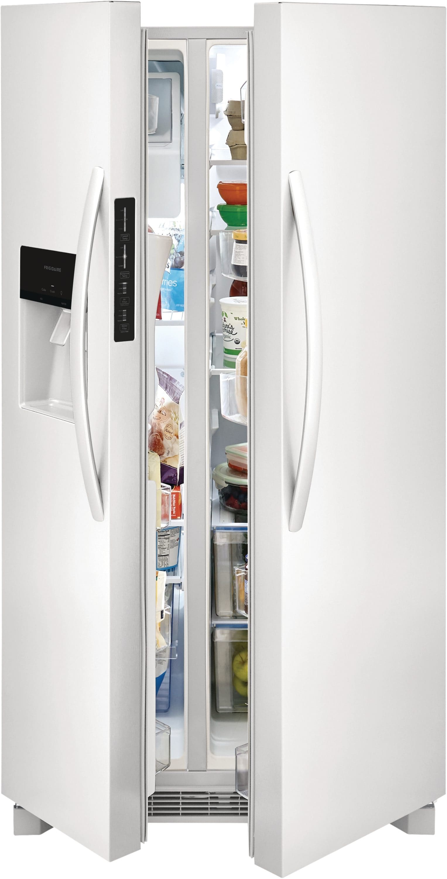 This Frigidaire 36-in side-by-side refrigerator offers our EvenTemp™ Cooling System which reacts quickly to temperature fluctuations and constantly circulates cold air throughout the fresh food and freezer compartments, ensuring a consistent cool from top to bottom. Keep fruits and vegetables fresh in our crispers that offer a seal to block out dry air. Enjoy the capacity to fit all of your family’s favorites and keep everything tidy with our flexible organization system that includes adjustable gallon door bins, removable glass shelves and two produce drawers. Awarded the Best Overall Side by Side Refrigerator of 2023 by Reviewed.com (USA Today).
