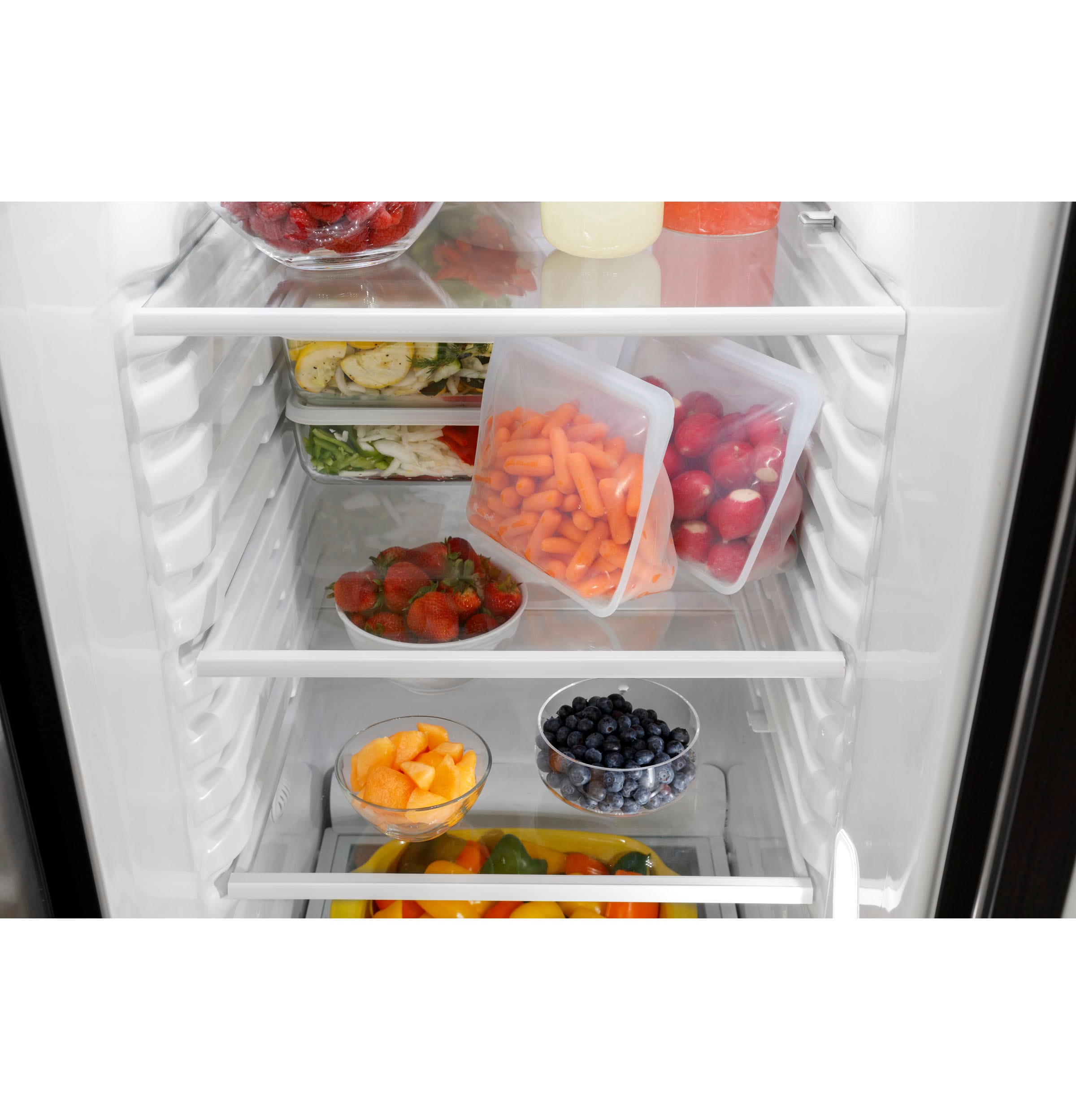 Edge-to-Edge Shelves – store more of your favorite items and enjoy organizational flexibility on every level with glass shelves that extend from wall to wall
