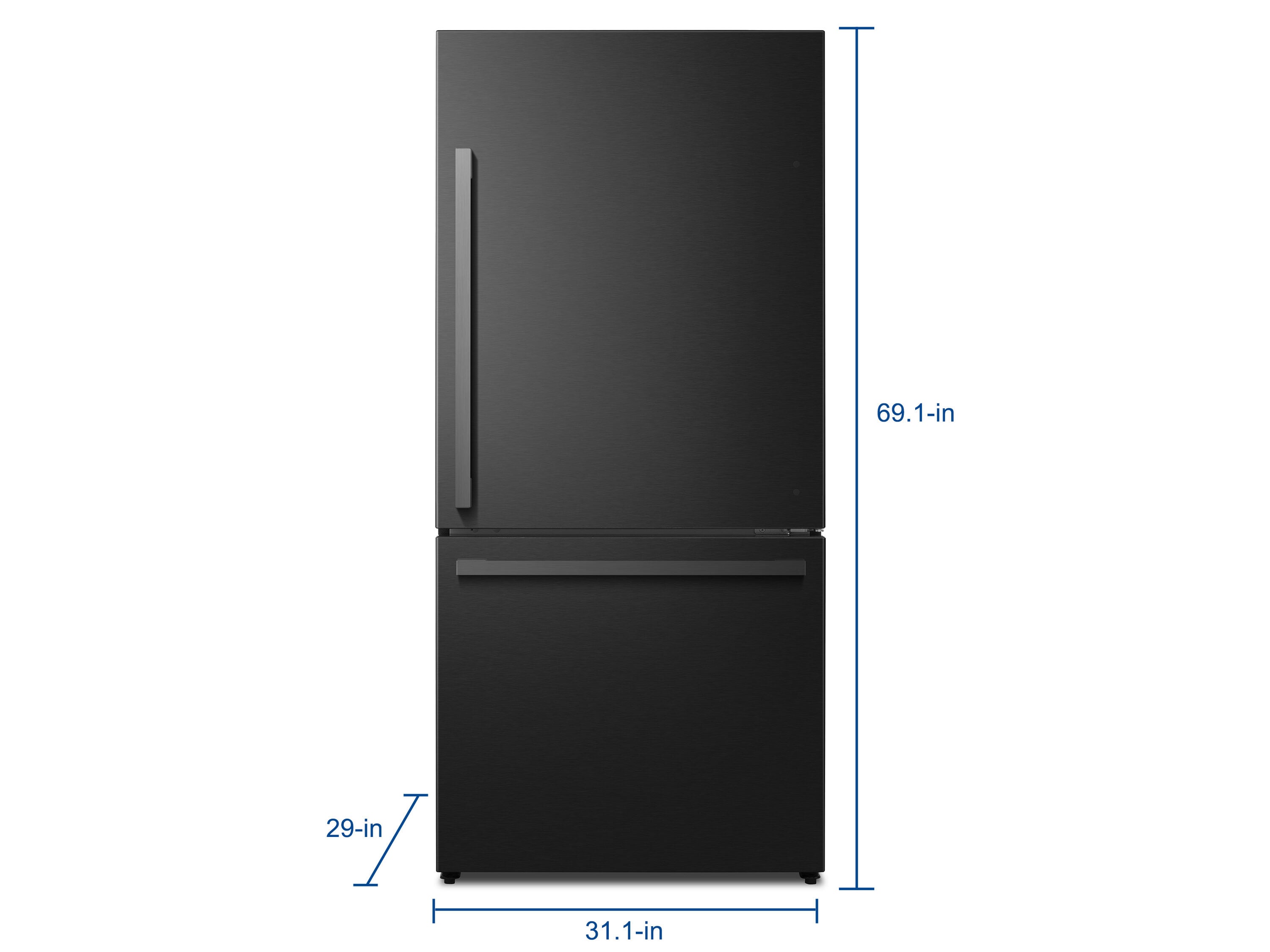 With its modern clean design, the Hisense HRB171N6ABE is slim enough to fit 33″ width spaces and give any kitchen a more premium look. The counter-depth design provides a sleek built-in feel. Gallon door storage keeps frequently used items within easy reach. LED lighting helps you find what you’re looking for. Two full-width freezer drawers make it easy to organize food.