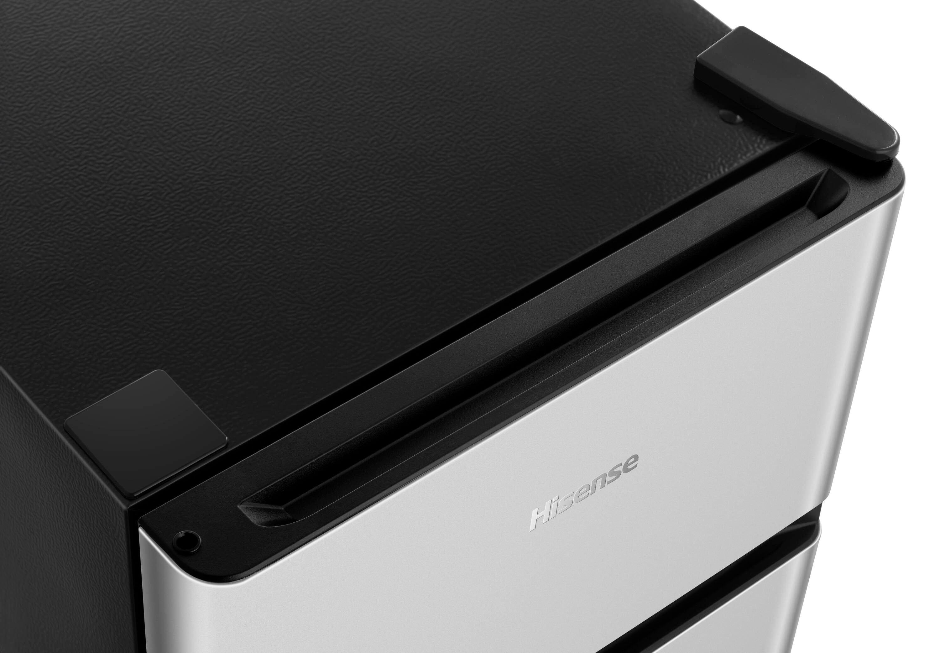 This new 3.1 cu. ft. silver mini fridge HRT031AVE is perfect for college dorms, break rooms, or just extra storage for your home and office space. New sleek door design with round edge adds elegance to your space. However, the sleek and stylish design does not compromise its functionality. A dedicated 0.9 CF freezer offers ample space for ice cream, frozen meals, and more. 2 L beverage storage allows you to store beverages and frees up space in the rest of the fridge. The adjustable legs and reversible door design allow for placement of this mini refrigerator virtually anywhere you need it. Thanks to the 43dB ultra quiet operation, you still get a peaceful sleep though it’s right next to you bed or desk…!