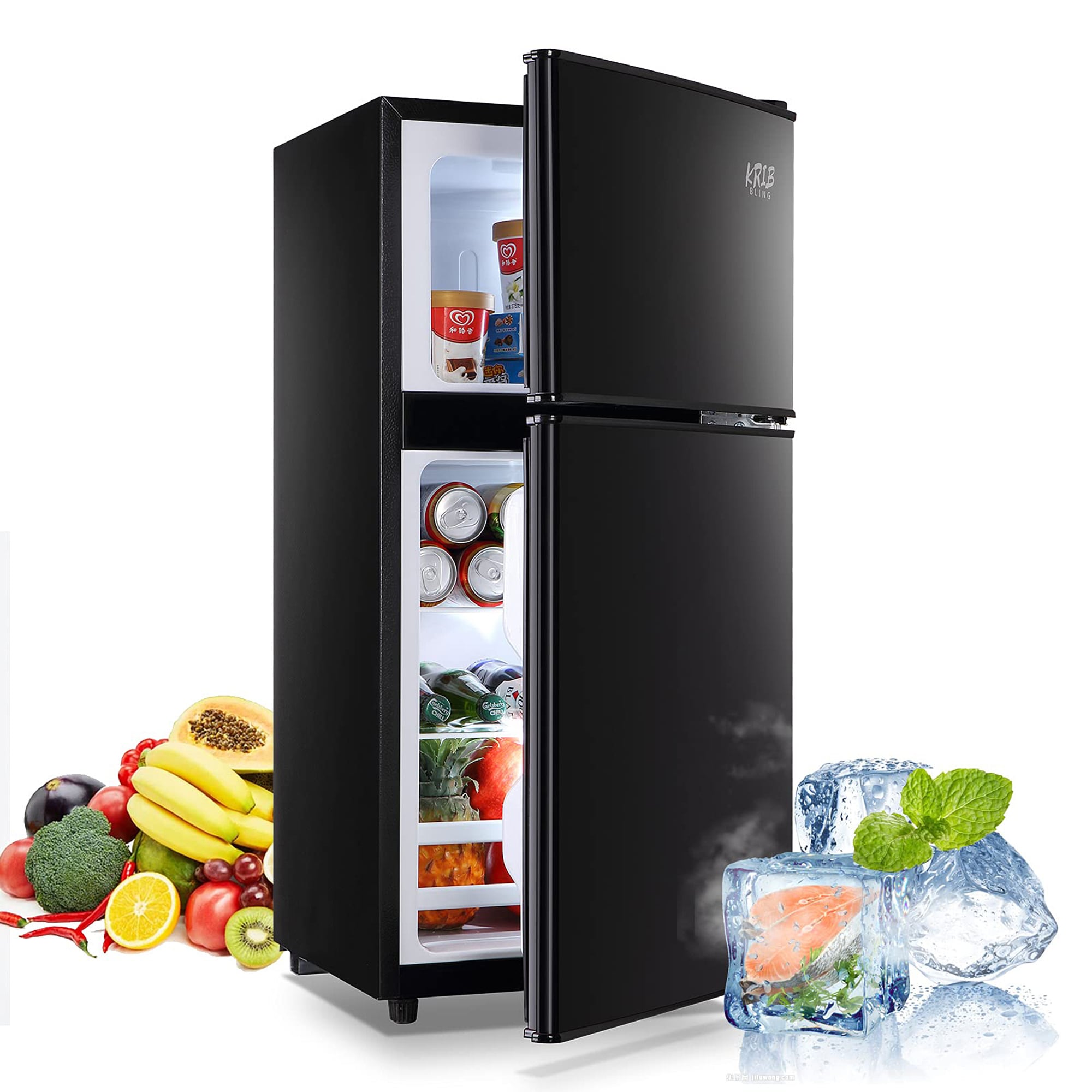 This 3.5 cu.ft mini fridge is ideal for use in bedrooms, offices, apartments and bars. Double circulation zone cooling and double circulation zone cooling can isolate the outside heat, effectively maintain the temperature in the box, and improve the effect of food preservation. When the ambient temperature is below 0 degree, turn on the switch to make the refrigerator work passively, so that the temperature of the freezer is kept in the state of low temperature freezing. Double door design can keep fresh ingredients, lock food moisture, fruits and vegetables, drinks, snacks, etc. Fast refrigeration to lock in the nutrients of the ingredients; Storage: Fish, seafood, meat, ice cream, etc.