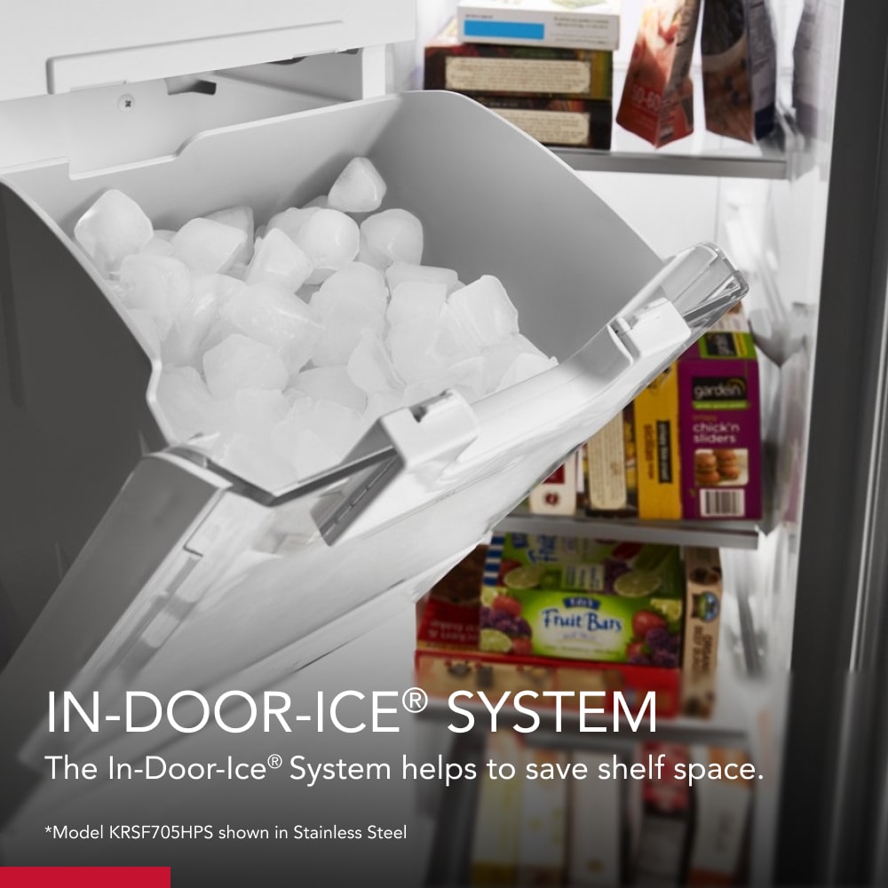 Storage that’s designed to care for fresh foods. This Kitchen Aid® side-by-side Refrigerator features the Preserva® Food Care System, which has two independent cooling systems to help keep food fresh while the FreshFlow™ Air Filter minimizes odors and the Produce Preserver helps delay over-ripening.* Plus, the PrintShield™ Finish resists fingerprints and smudges on the stainless exterior. (*Based on commonly purchased produce.)