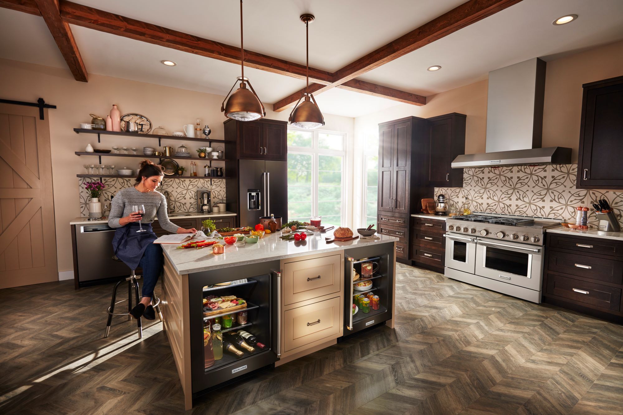 This Undercounter Refrigerator makes room for party essentials from platters to pitchers. Motion-Activated LED Lighting turns on inside as you approach, so you can see through the UV-Protected Thermal Glass Door to what’s inside, and a Temperature Monitoring System with sensor alert adds peace of mind. Fully Flush Installation with Hidden Hinges provides a built-in look within cabinetry.