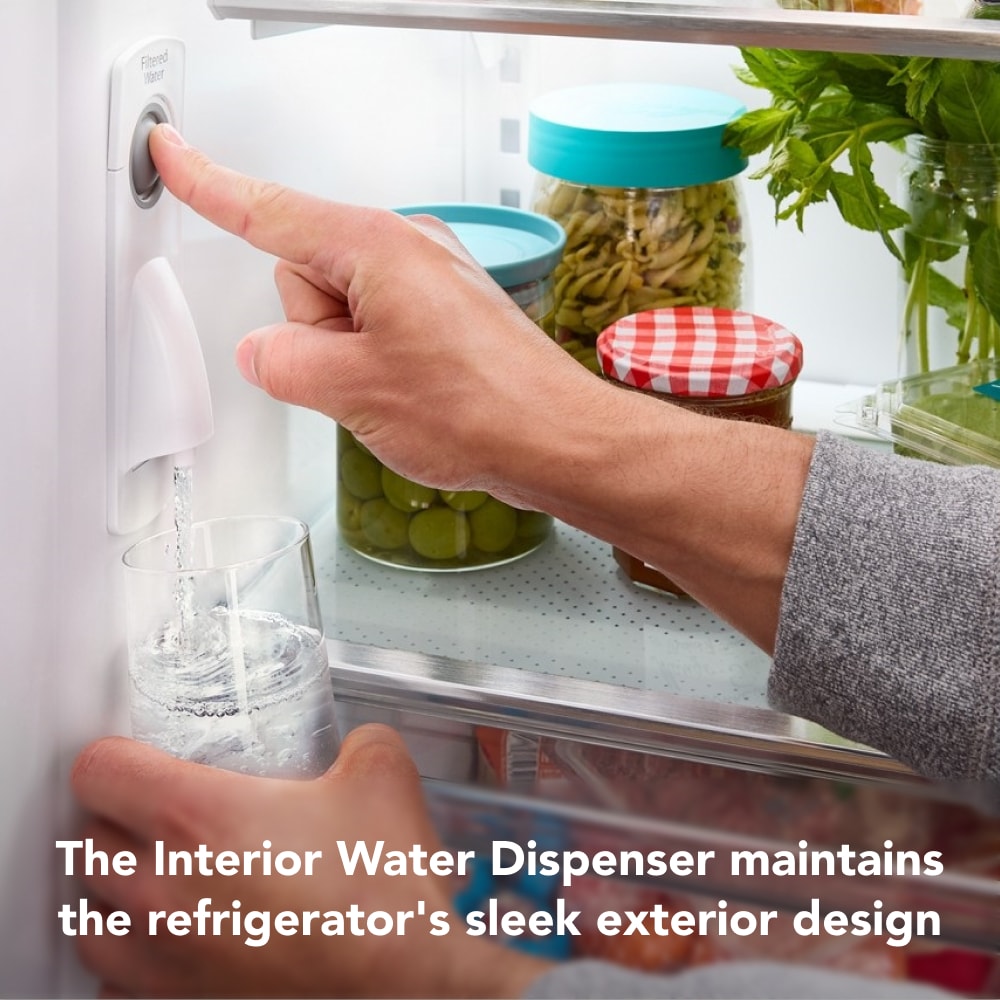 The Interior Water Dispenser maintains the refrigerator’s sleek exterior design