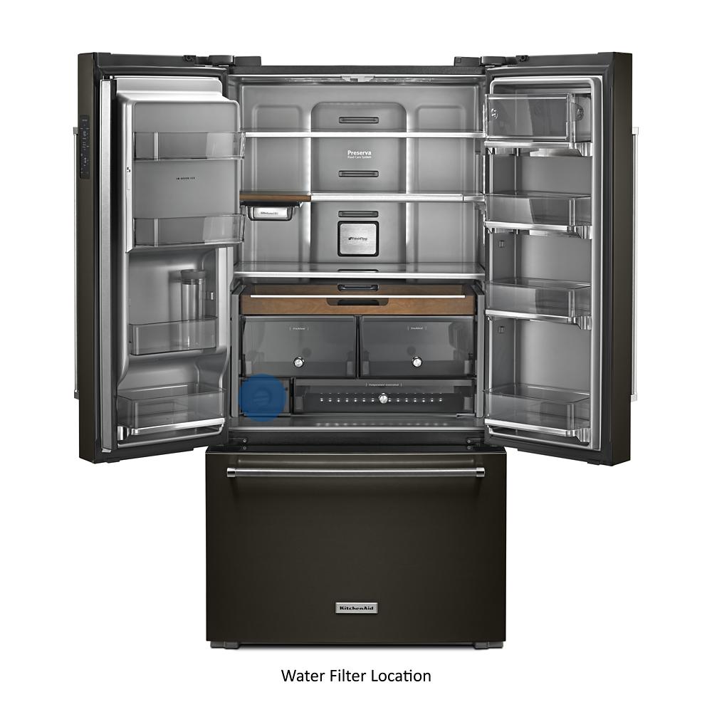 The largest capacity counter-depth refrigerator in its class (among leading premium 3-door french door bottom mount brands) features PrintShield™ finish to resist fingerprints outside and flexible storage options inside. A slide-away shelf retracts to fit tall items, and full-extension self-close crispers and custom temperature pantry let you store more and find it easily. Plus, the Preserva®Food Care System with Linear Compressor helps keep it all at the peak of freshness.