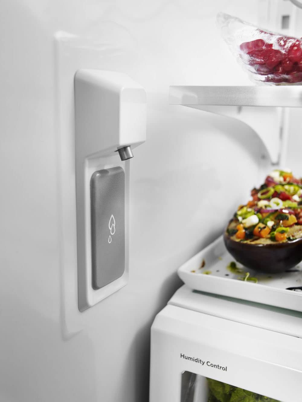 This 30-inch refrigerator is an ideal solution in small kitchens that can typically only accept a top-freezer refrigerator. French doors open with a narrow door swing similar to a side-by-side refrigerator. And inside you’ll find appealing features including an interior water dispenser and a full-width pantry drawer that helps keep your fresh food organized and easy to reach.