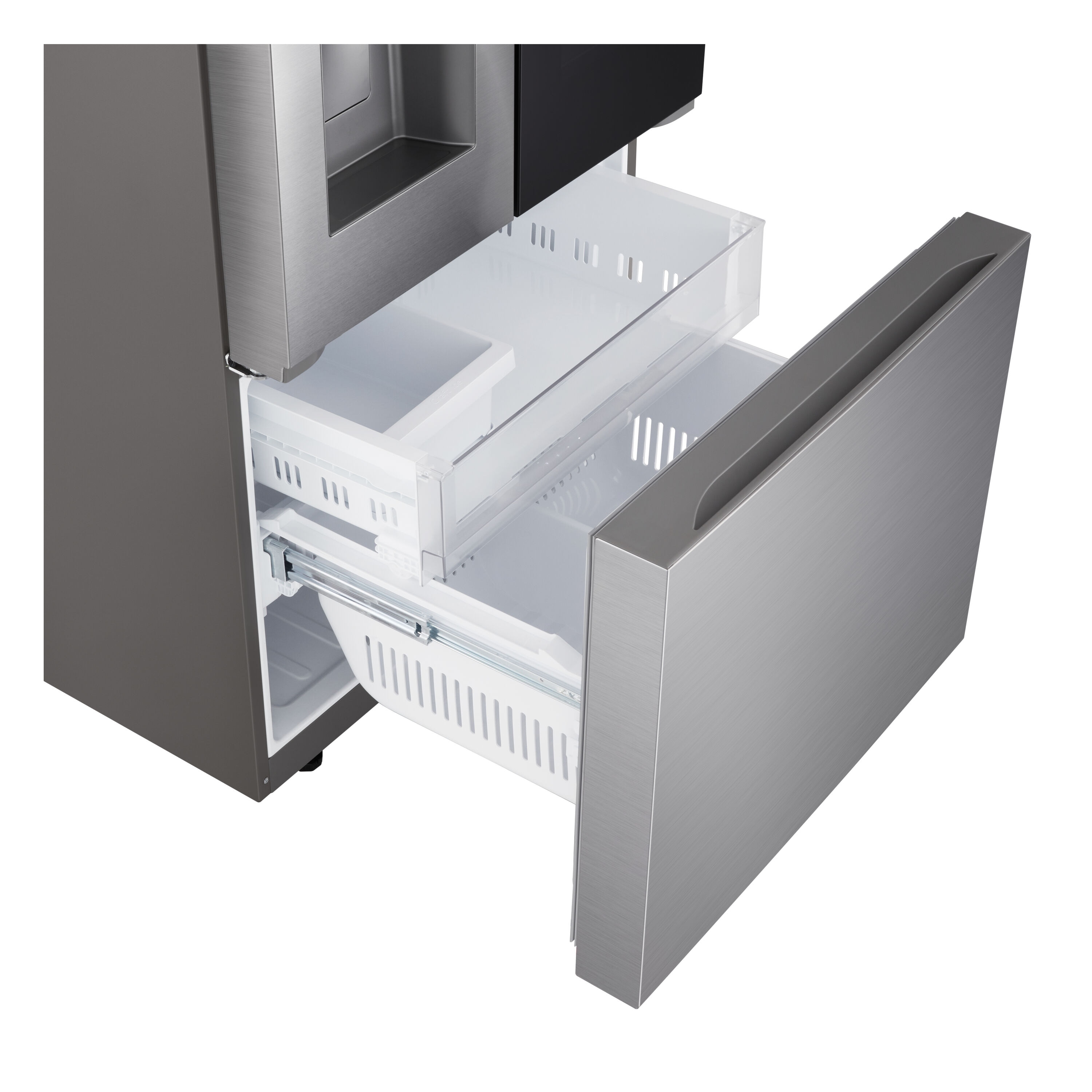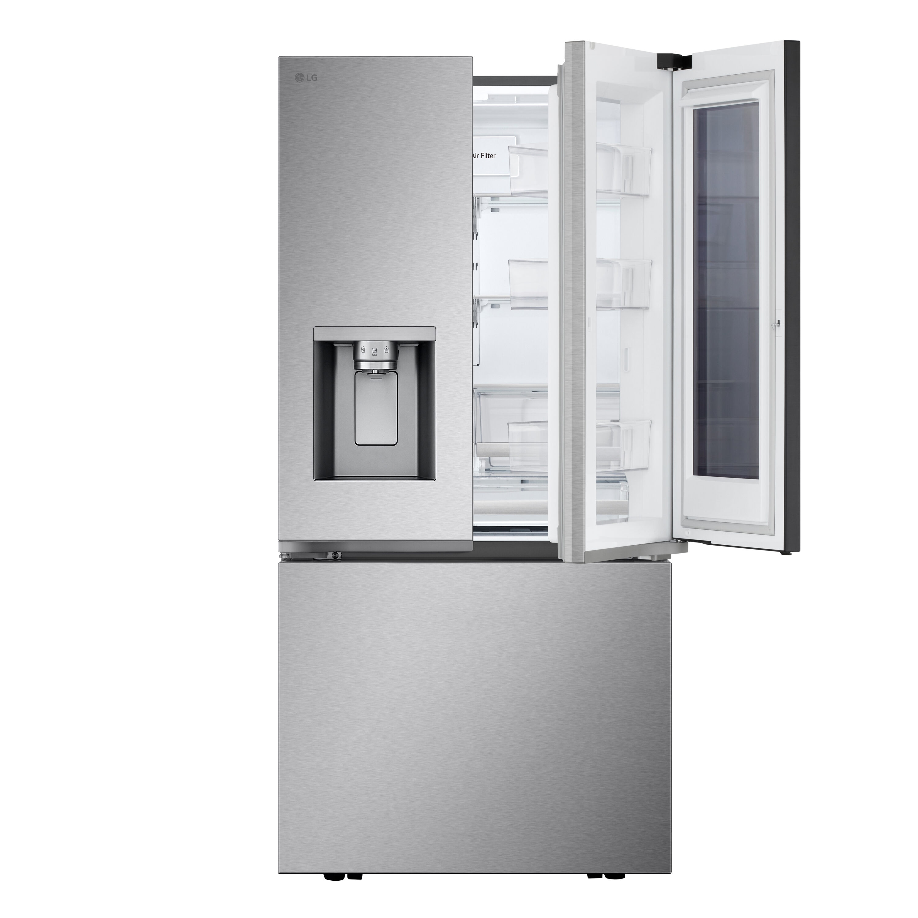 This 3-Door French Door refrigerator comes with modern, flat panels and InstaView® window that lets you see inside with two quick knocks, you will be able to see inside the Door-in-Door® compartment without ever opening the door. You also get dual ice makers to ensure that you have extra ice for your entertaining needs.