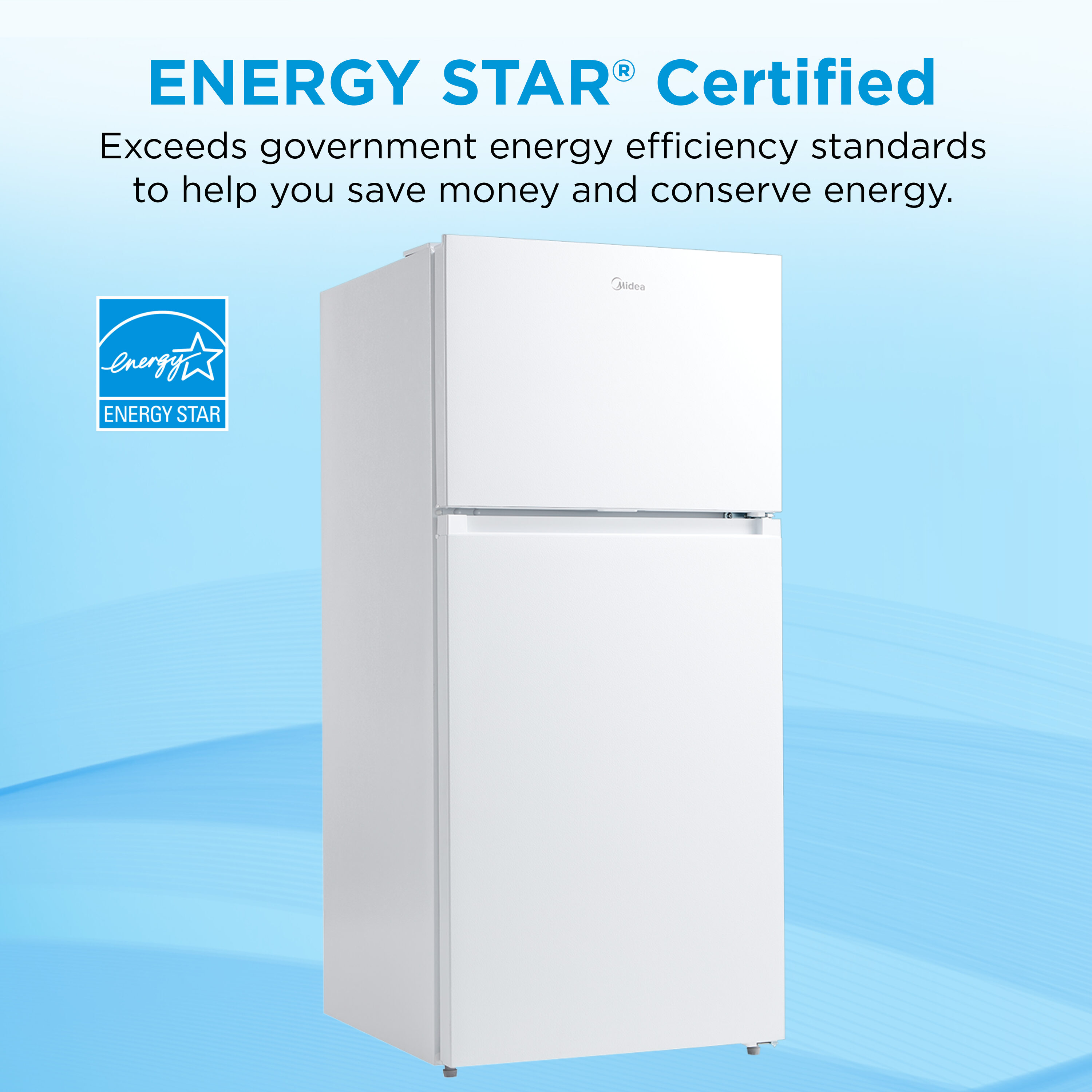 Upgrade your kitchen with the Midea 18.1-cu ft Top-Freezer Refrigerator (White), which offers both a wide range of convenient features and energy-efficient performance. The internal LED lighting ensures that you can always find what you’re looking for, while the electronic control panel makes temperature adjustments a breeze. Humidity-controlled crisper drawers keep your produce fresh, and the reversible door allows for flexible installation. The top-freezer design puts frozen foods at eye level for easy access. Bring home this refrigerator today to optimize your food storage capabilities and keep your kitchen running smoothly.
