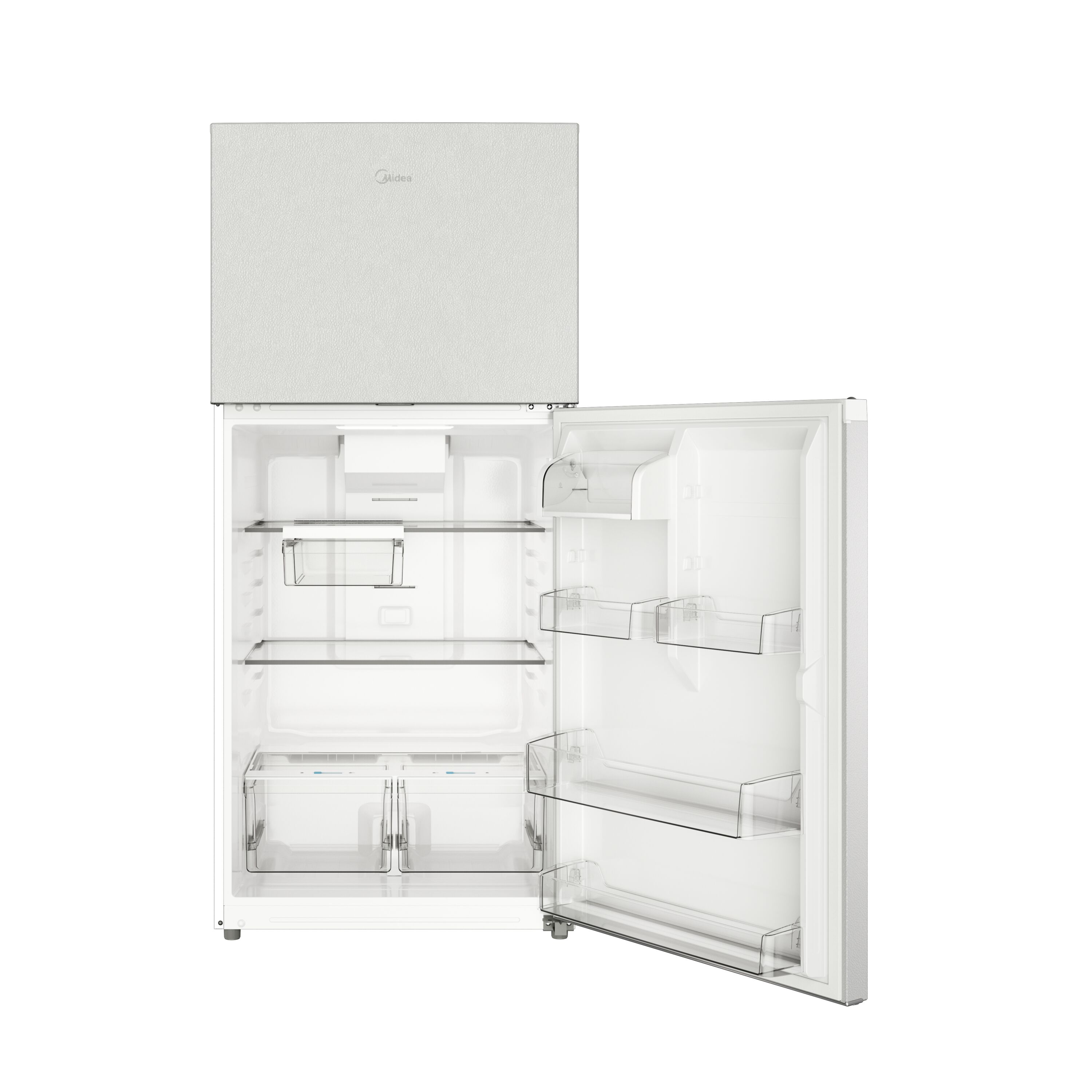 Upgrade your kitchen with the Midea 20.5-cu ft Top-Freezer Refrigerator (White), which offers both a wide range of convenient features and energy-efficient performance. The internal LED lighting ensures that you can always find what you’re looking for, while the electronic control panel makes temperature adjustments a breeze. Humidity-controlled crisper drawers keep your produce fresh, and the reversible door allows for flexible installation. The top-freezer design puts frozen foods at eye level for easy access. Bring home this refrigerator today to optimize your food storage capabilities and keep your kitchen running smoothly.