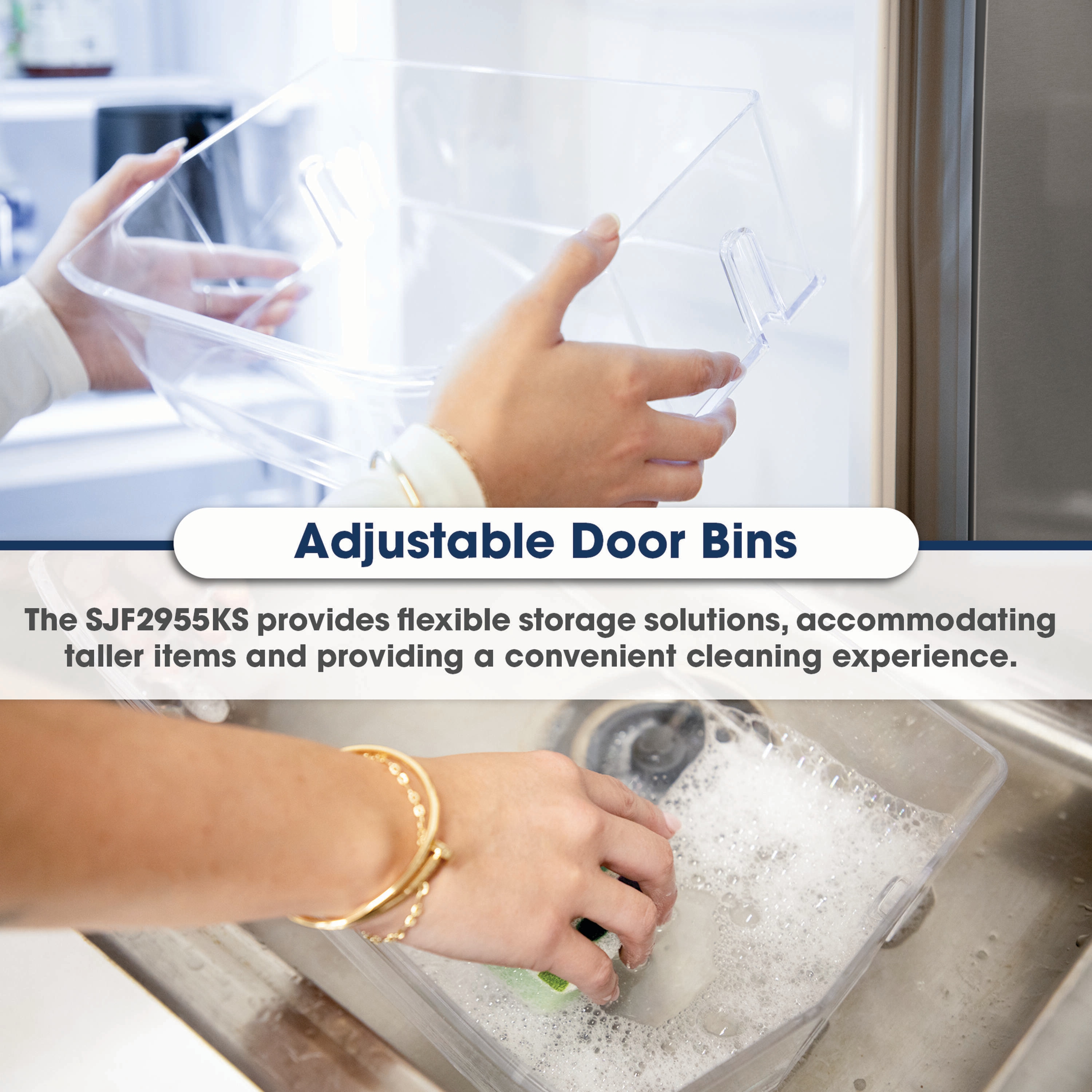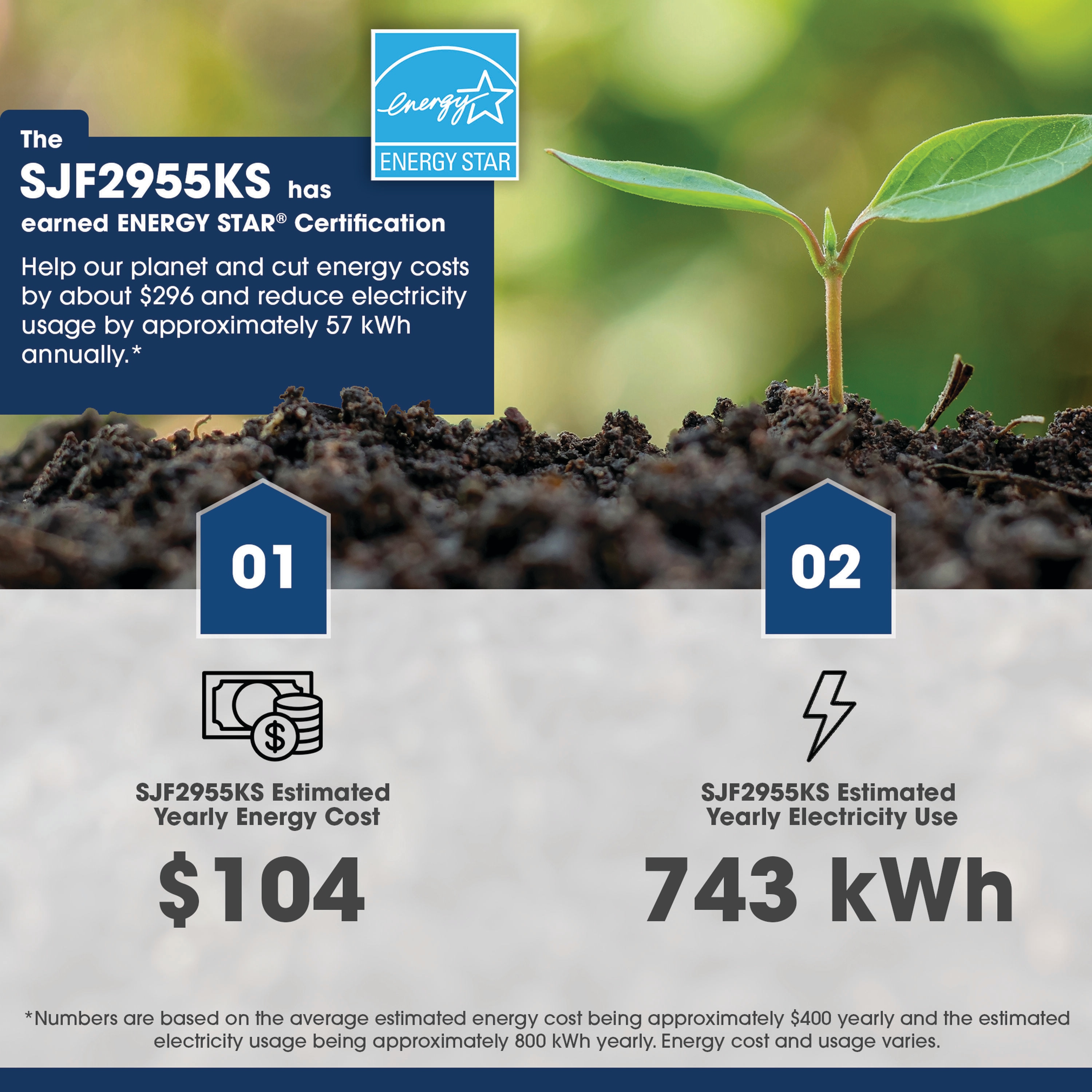 This refrigerator incorporates an Advanced Cooling Plus System, which helps maintain optimal freshness for your groceries. An ice and water dispenser on the door provides cubed ice, crushed ice, and water without opening the door. Dual ice makers provide up to 6.9 lbs. of ice per day for even your largest gatherings. For accelerated cooling, Chill-Boost and Freeze-Boost options are available to quickly adjust the refrigerator and freezer internal temperatures as needed. This ADA compliant refrigerator’s touch control panel is conveniently located on the door for easy access. A slide-In shelf and adjustable gallon door bins allow you to organize your refrigerator and create more space for large items like pitchers and bottles. The freezer compartment features an EZ Slide Drawer for easy access to frozen items and automatic defrost for hassle-free maintenance. This refrigerator runs quietly at less than 43 dB and is Energy Star certified for a peaceful environment while conserving energy.