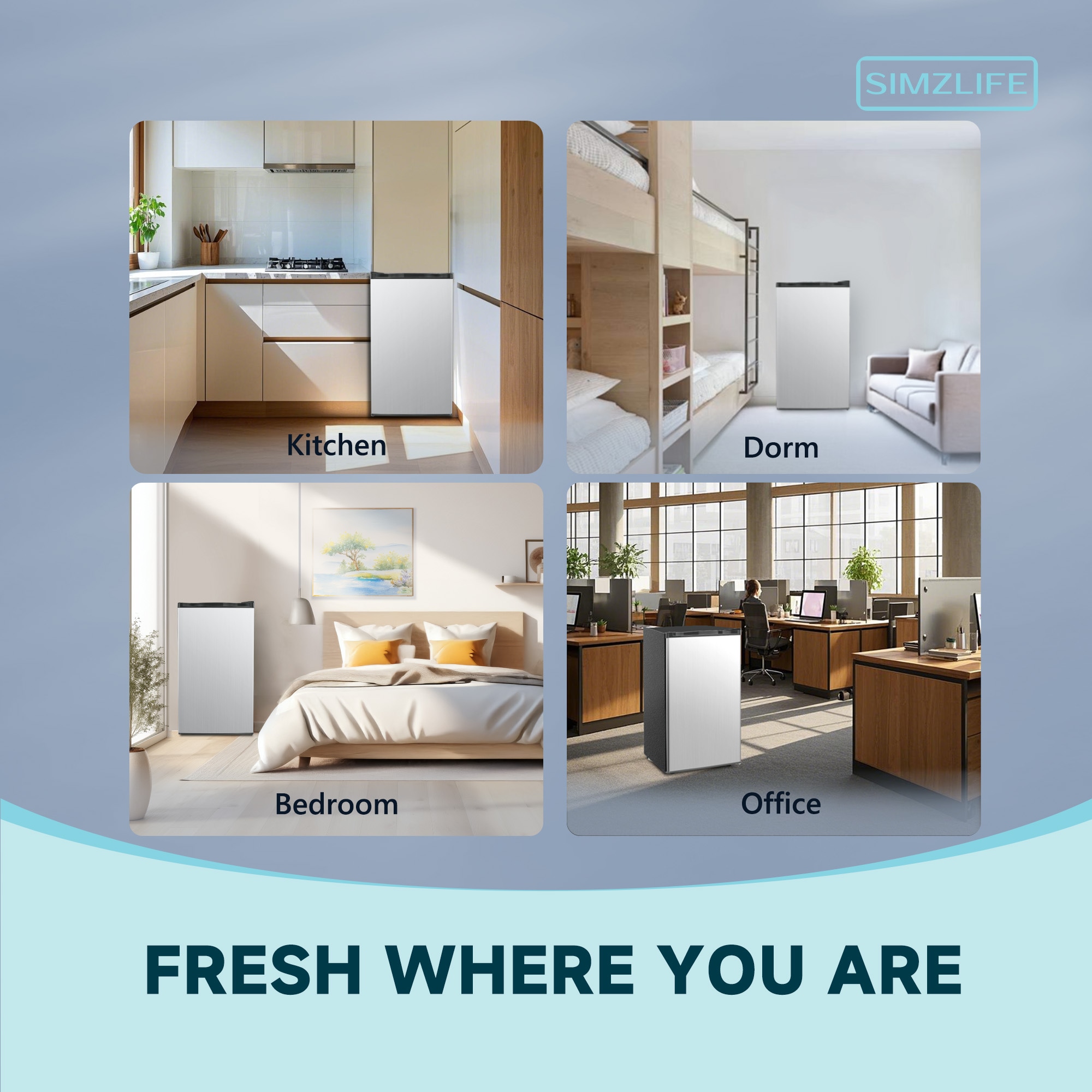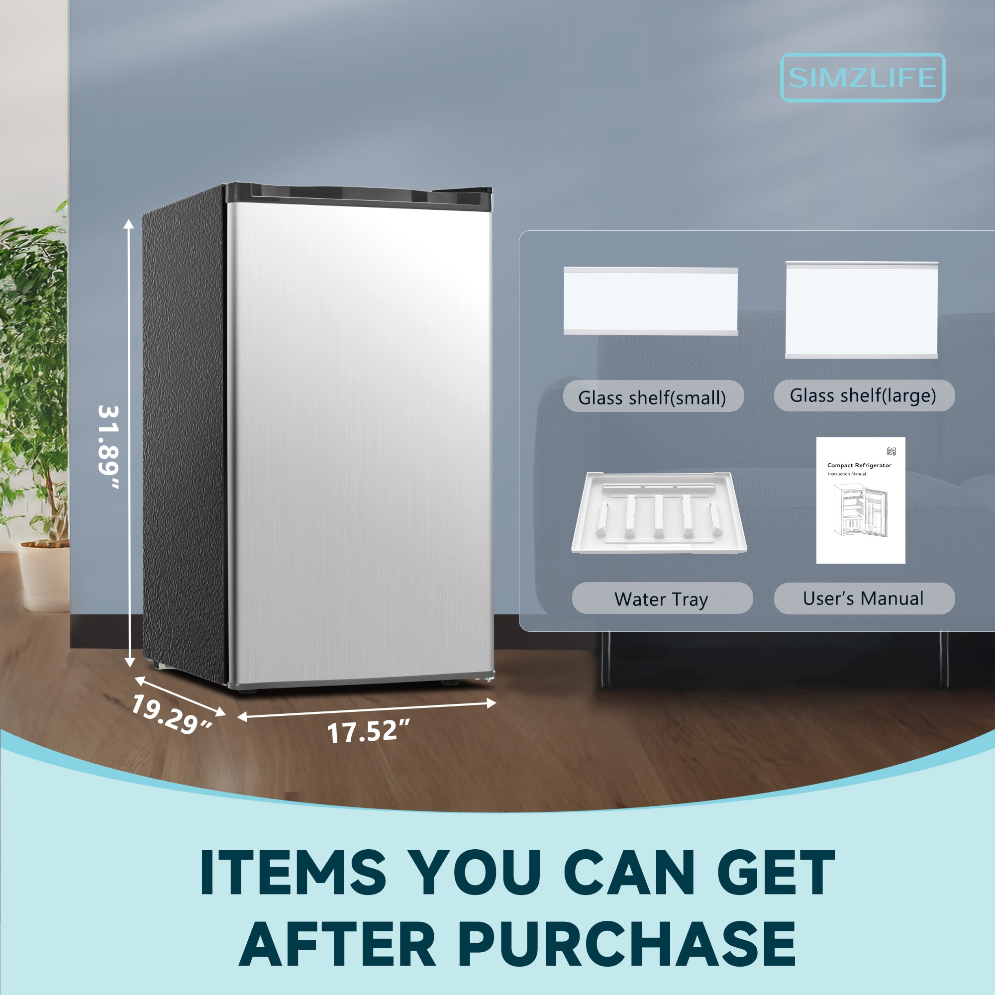 Our mini refrigerator, energy-saving and environmentally friendly, providing you with an efficient cold storage experience. Uniquely user-friendly design with LED light allows you to access it anytime at night with no restrictions. Featuring a large capacity of 3.2 cu. ft. including 2.9 cu. ft. refrigeration section and 0.3 cu. ft. micro-freezing section, it meets your various storage needs. Compact design for bedrooms, kitchens, dormitories and offices with a small footprint of only 2.2 square feet. Quiet operation, only 38dB, five-position temperature control knob, precise temperature adjustment, thoughtful details reflect quality.Our professional after-sales team is at your service 24 hours a day, and the product is fully equipped, so you can enjoy a convenient refrigeration experience.