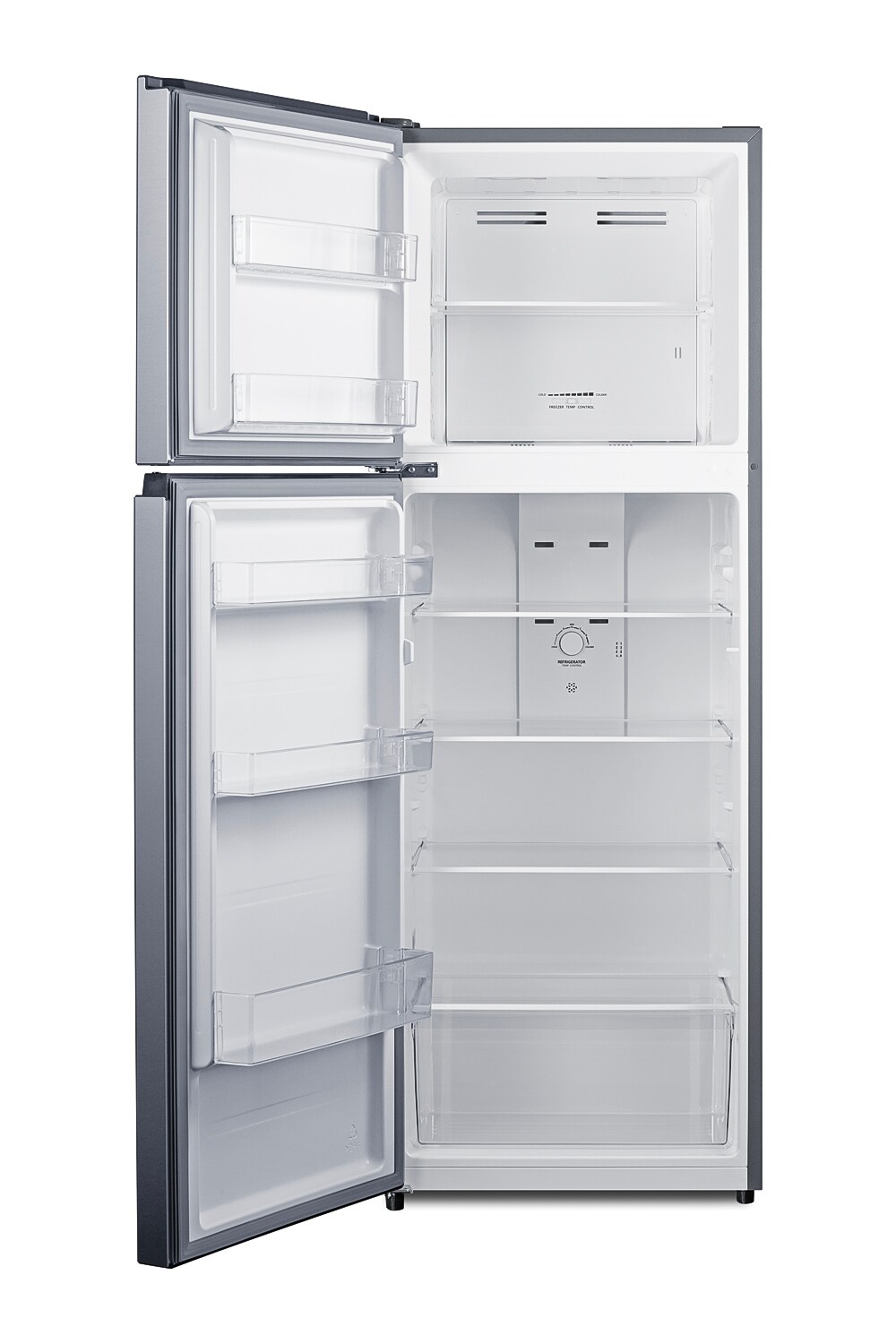 Multiple door shelves in both the refrigerator and freezer compartments offer convenient storage for condiments and bottles