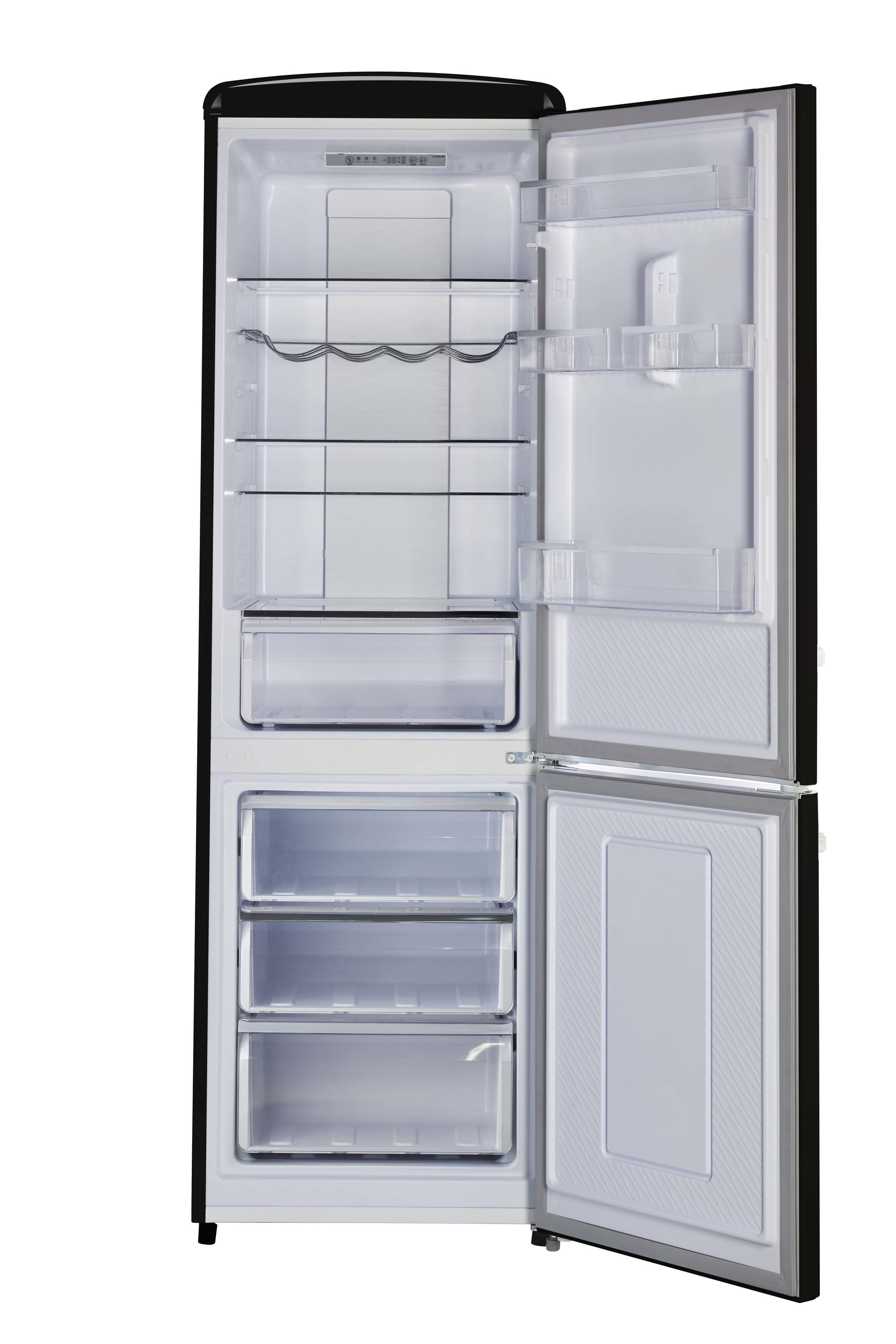 When you’re looking for more storage room, this 12 cu. Ft. Classic retro bottom-mount refrigerator comes with ample space to keep all your fresh and frozen foods, packaged in an eye-catching throwback design. Enjoy the ease of top-mounted fridge space that lets you reach in and find what you need without bending down. Plus the freezer bottom is designed to maximize storage for items you need less often.