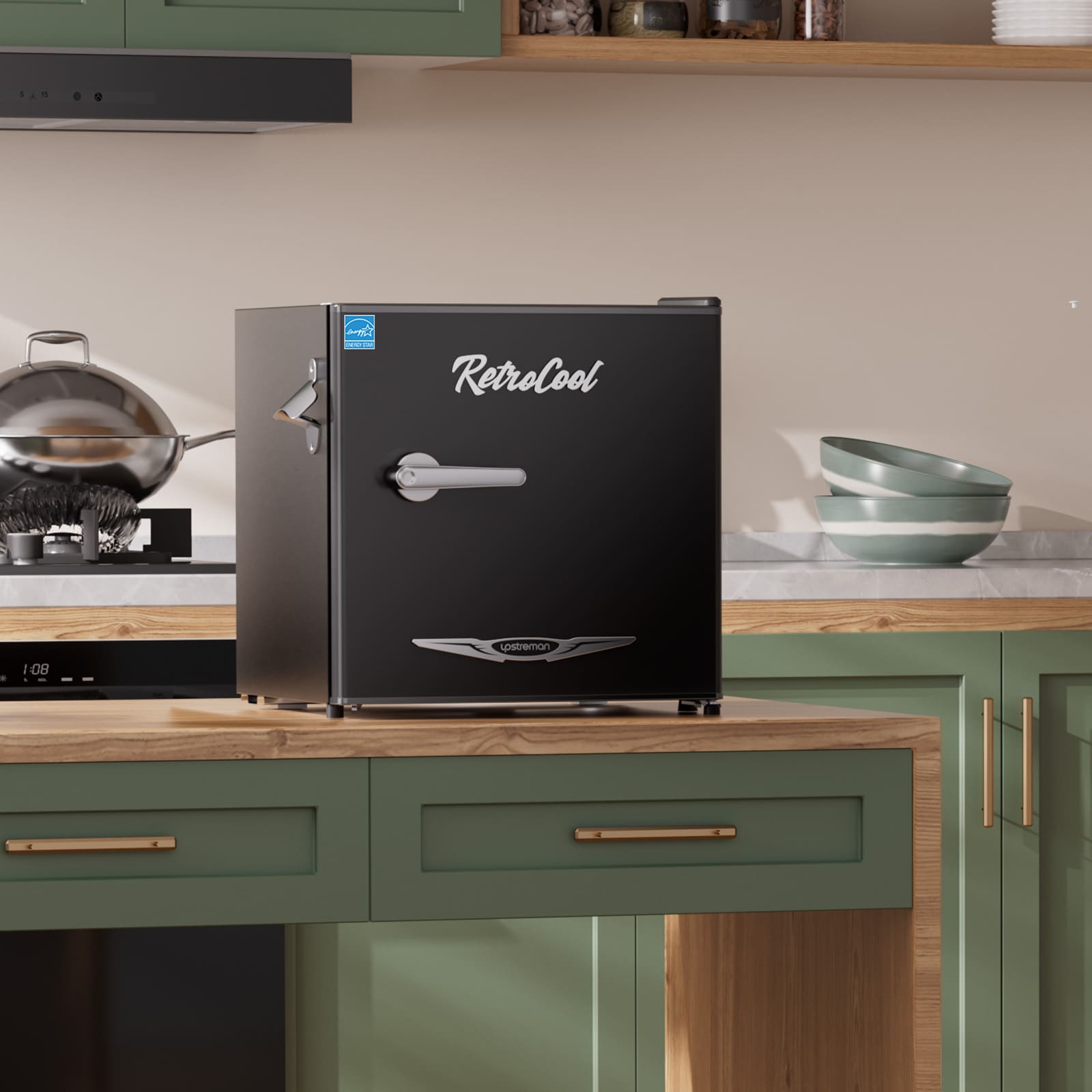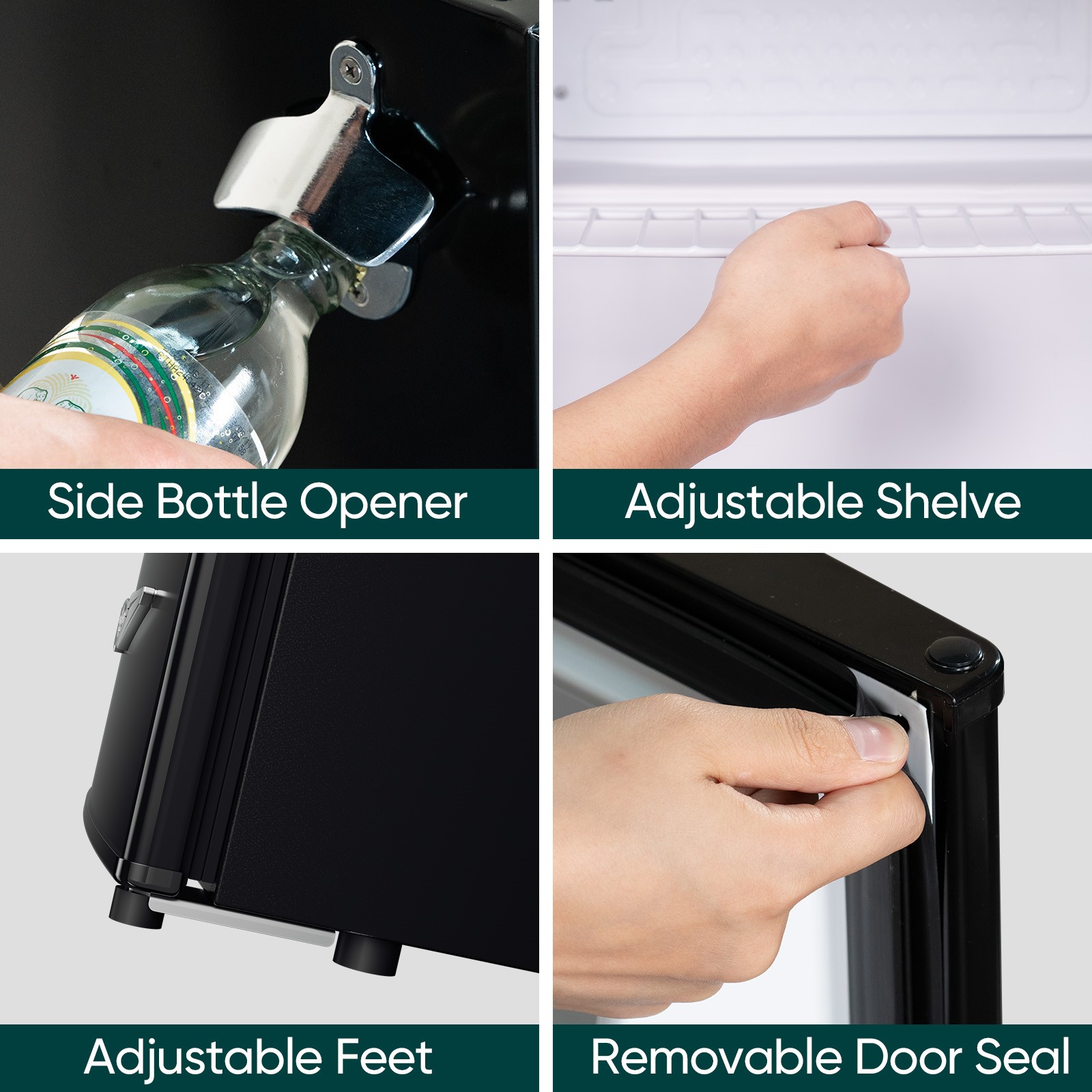 Featuring a classic exterior with metal handle and side bottle opener, the overall appearance of this retro refrigerator is stylish and high texture.