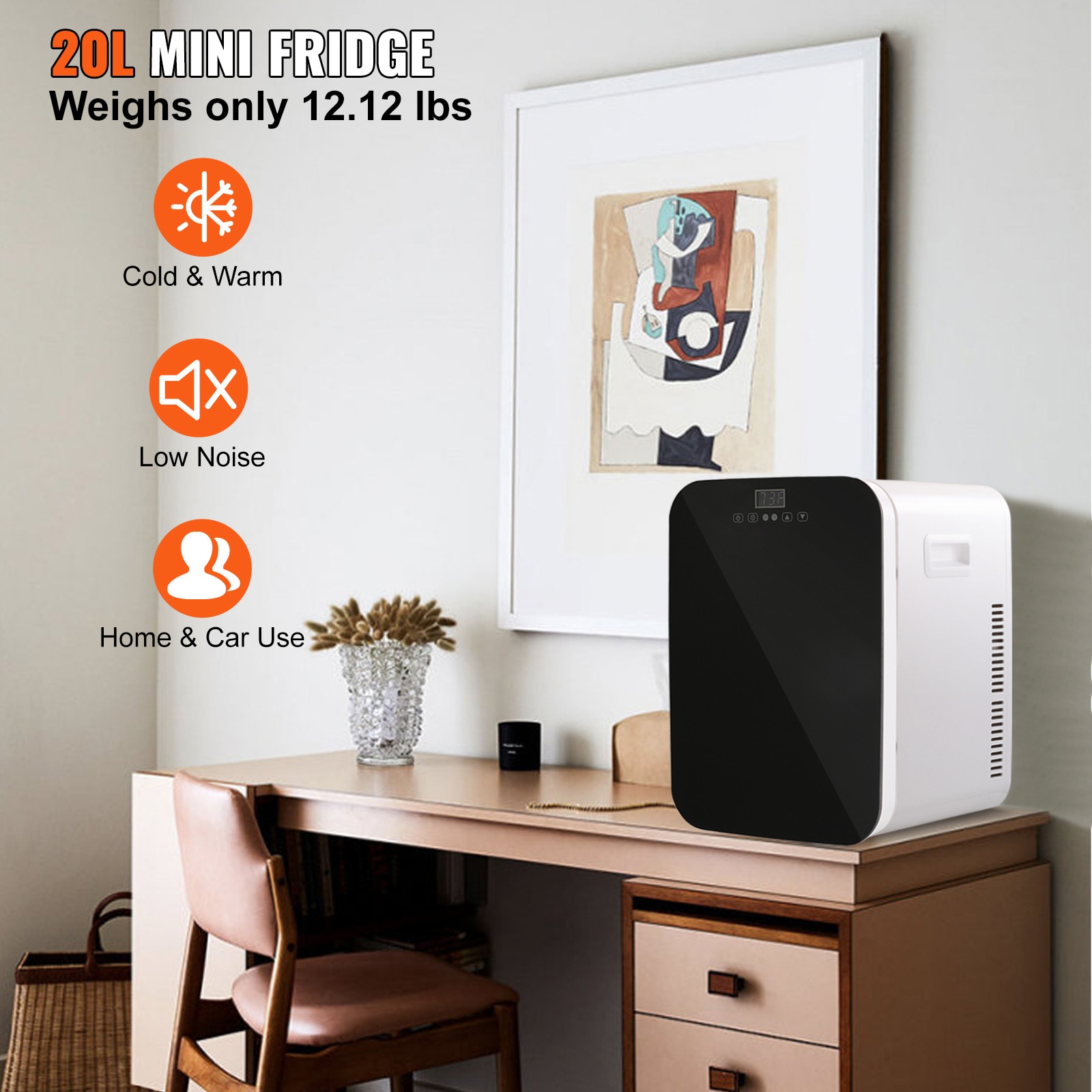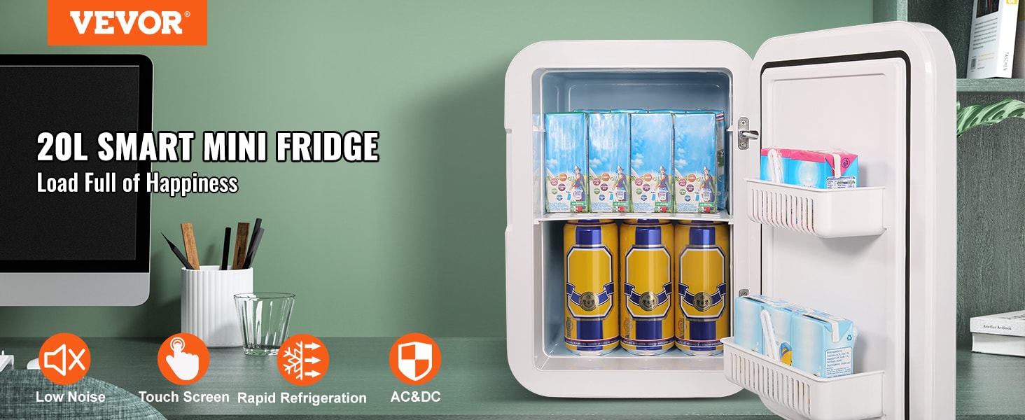 20L Mini Fridge: This multifunctional 20L mini fridge has both cooling and warming modes, and it can go as low as 73.4 degrees Fahrenheit below ambient temperature and as high as 140 degrees Fahrenheit above ambient temperature; The ≤45db low decibel operation will not disturb your work and life; Equipped with home power adapter and 12V DC power cord, this Fridge is perfect for indoor and outdoor use, where you need to store food, drinks, breast milk, medicine, cosmetics, etc;; [Package Content] 1 x Mini Fridge; 1 x US Power Adapter; 1 x DC Car Power Cable; 1 x Towel; 1 x Manual