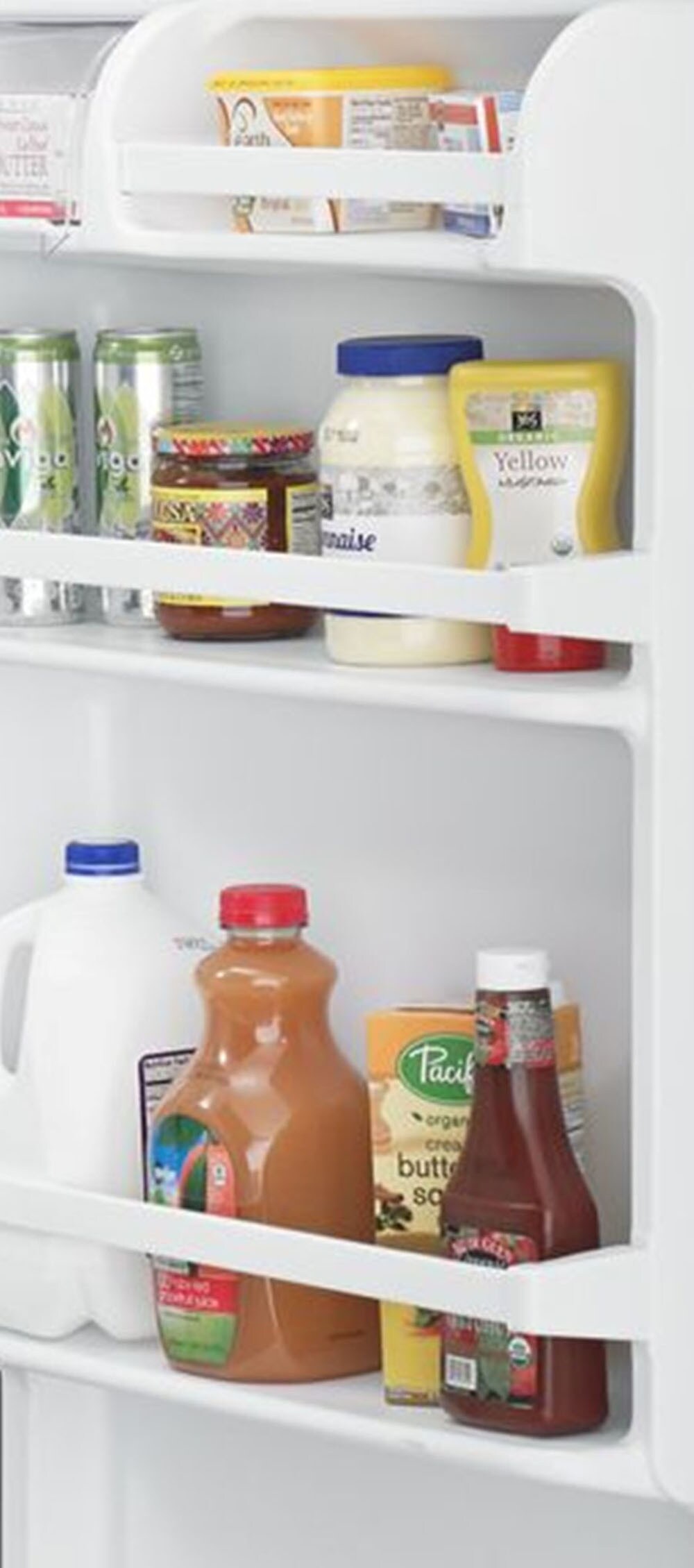 Wire shelves and door bins keep your foods organized