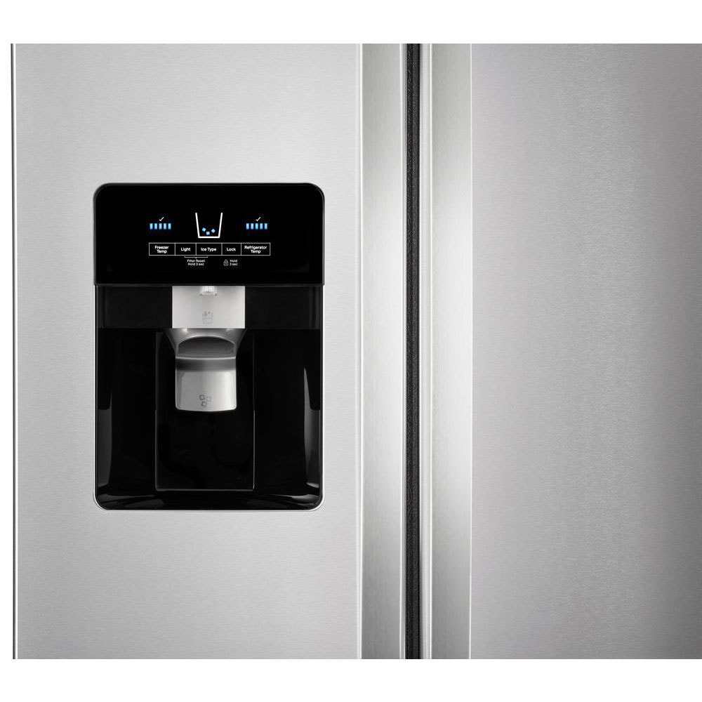 Fit and find it all with purposefully-designed storage spaces in this ENERGY STAR® certified refrigerator. Get increased loading flexibility with adjustable gallon door bins. The refrigerator with ice and water dispenser lets you access ice and water without opening the door while LED lights keep food looking as good as it tastes.