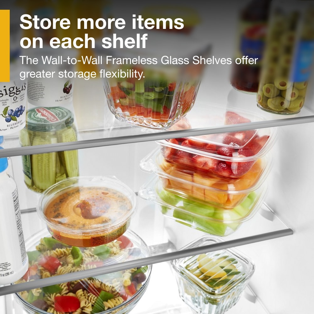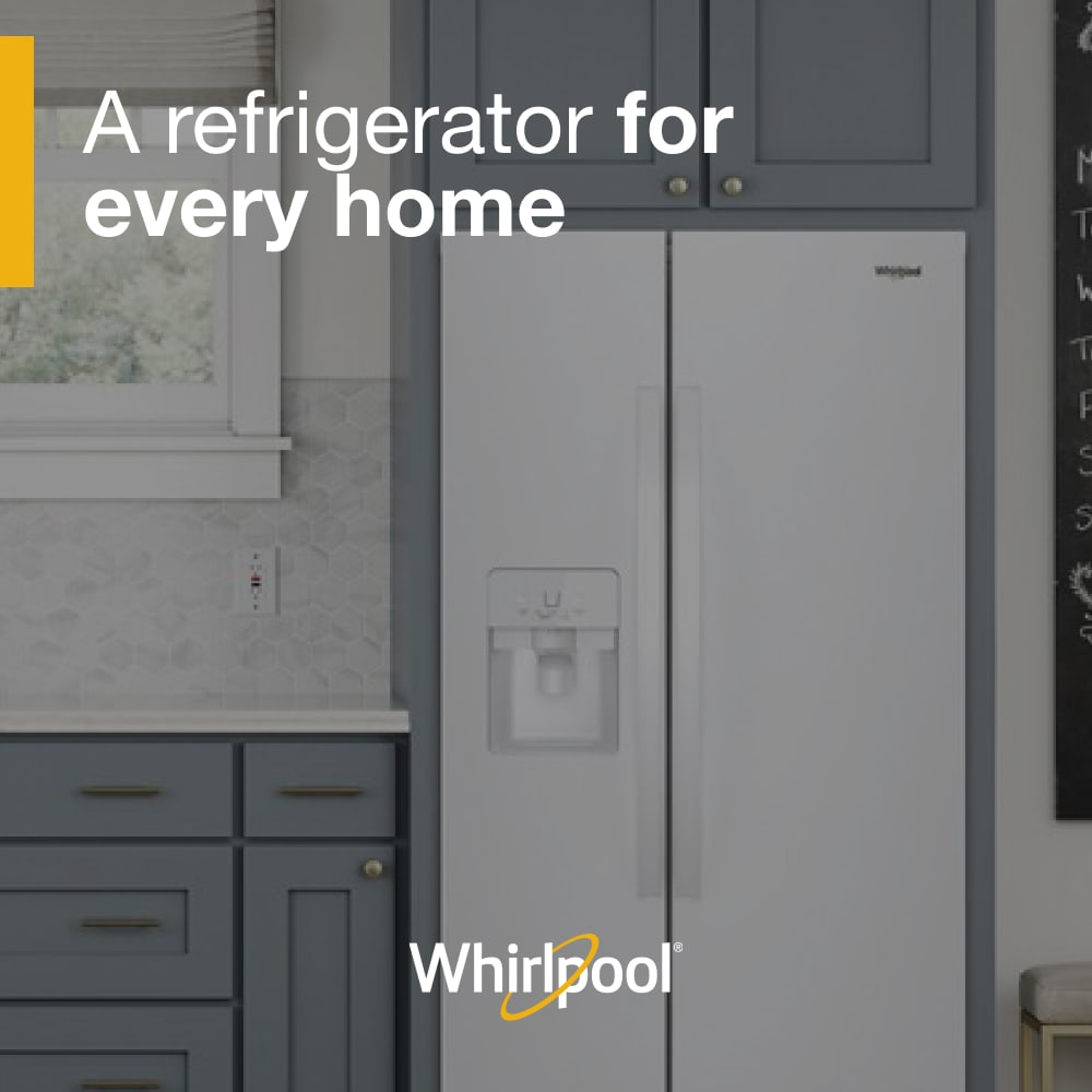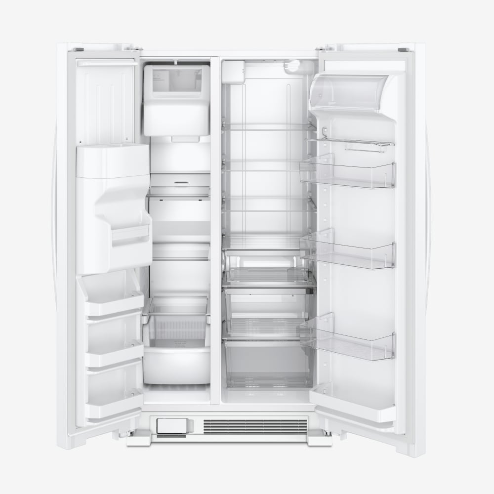 Enjoy purposefully designed storage spaces for the items your family uses the most. This Whirlpool® 25 cu. ft. Side-by-Side Refrigerator is designed with features to help you fit and find your favorite foods, like an in-door Can Caddy, Frameless Glass Shelves that offer greater storage flexibility and a Deli Drawer. This model also allows access to fresh filtered water and ice without ever opening the refrigerator door. Whirlpool® Side-by-Side Refrigerators have the lowest repair rate among side-by-side refrigerators. (*Claim compares Whirlpool branded refrigerators to GE, Frigidaire, Samsung and LG.Based on service required data, Q2 2022-Q2 2023, Traqline – The Stevenson Company, 2023.)