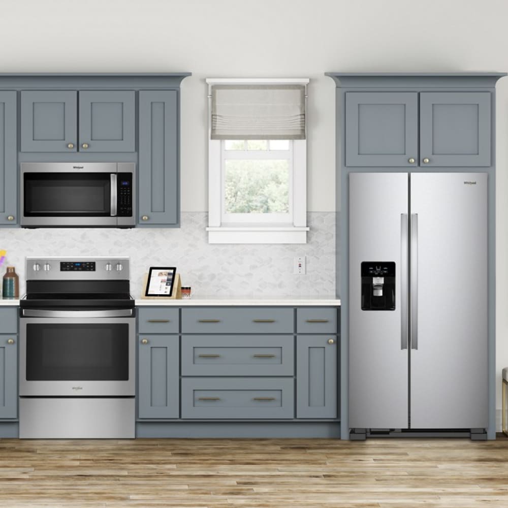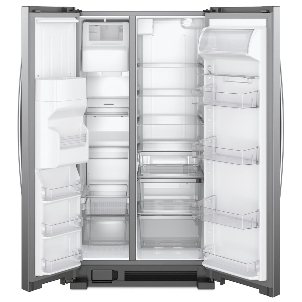 Equipping your kitchen with a refrigerator that meets your needs is a game changer. This 21.4 cu ft side-by-side refrigerator from Whirlpool is designed with storage spaces for items your family uses the most, and clever features, like the in-door caddy for canned beverages and bottles. Good to know: Whirlpool® refrigerators have the lowest repair rate among side by side refrigerators. (*Claim compares Whirlpool branded refrigerators to GE, Frigidaire, Samsung and LG.Based on service required data, Q2 2022-Q2 2023, Traqline – The Stevenson Company, 2023.)