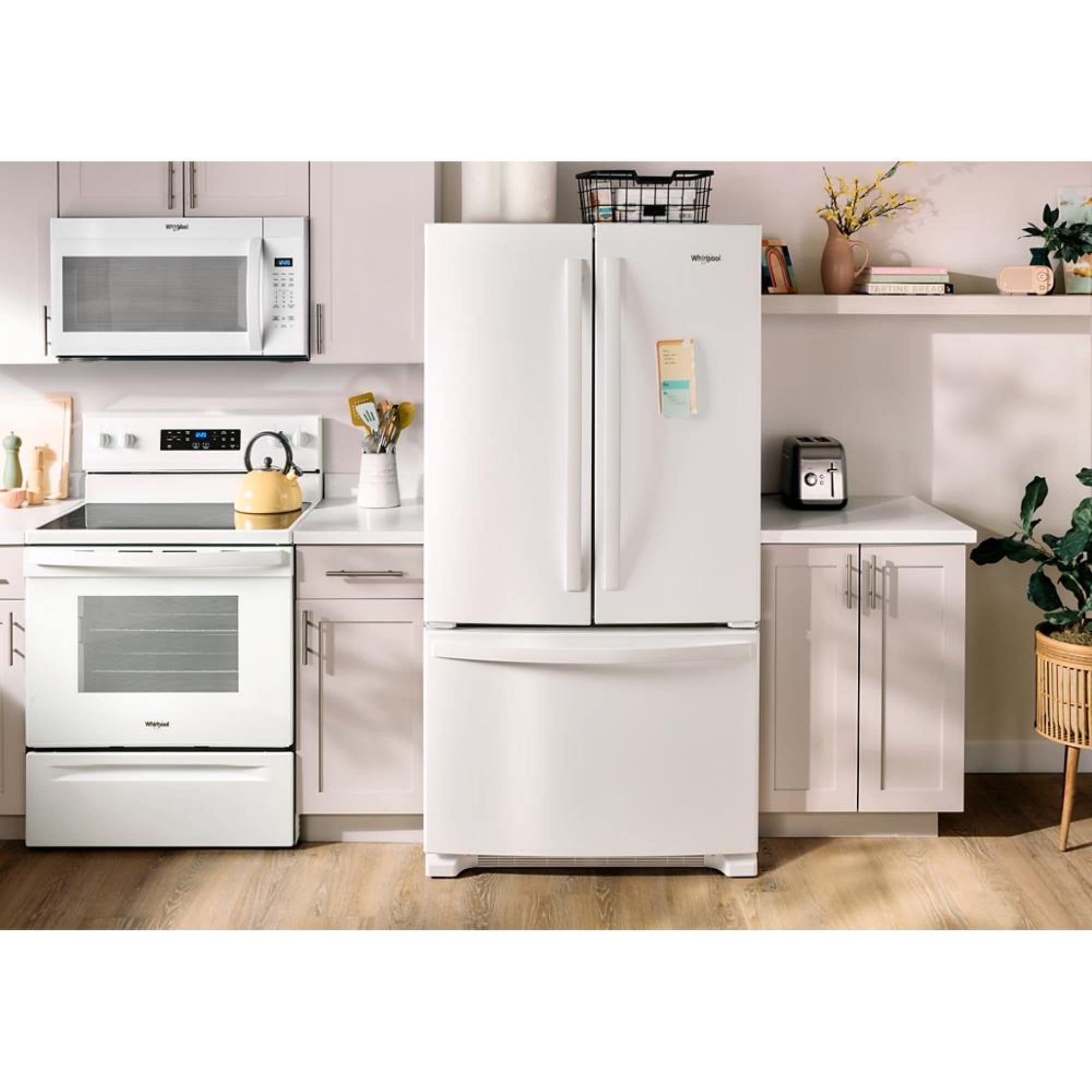 This French Door refrigerator with an internal water dispenser gives you the storage you need with the flexibility you want. With features like an Elevated Deli Drawer, spend less time looking and more time enjoying your deli essentials. The Interior Water Dispenser with Whirlpool® Water Filtration offers on-demand filtration so even clean water is easy to find. Get more capacity than counter depth models thanks to its Full Depth Design.