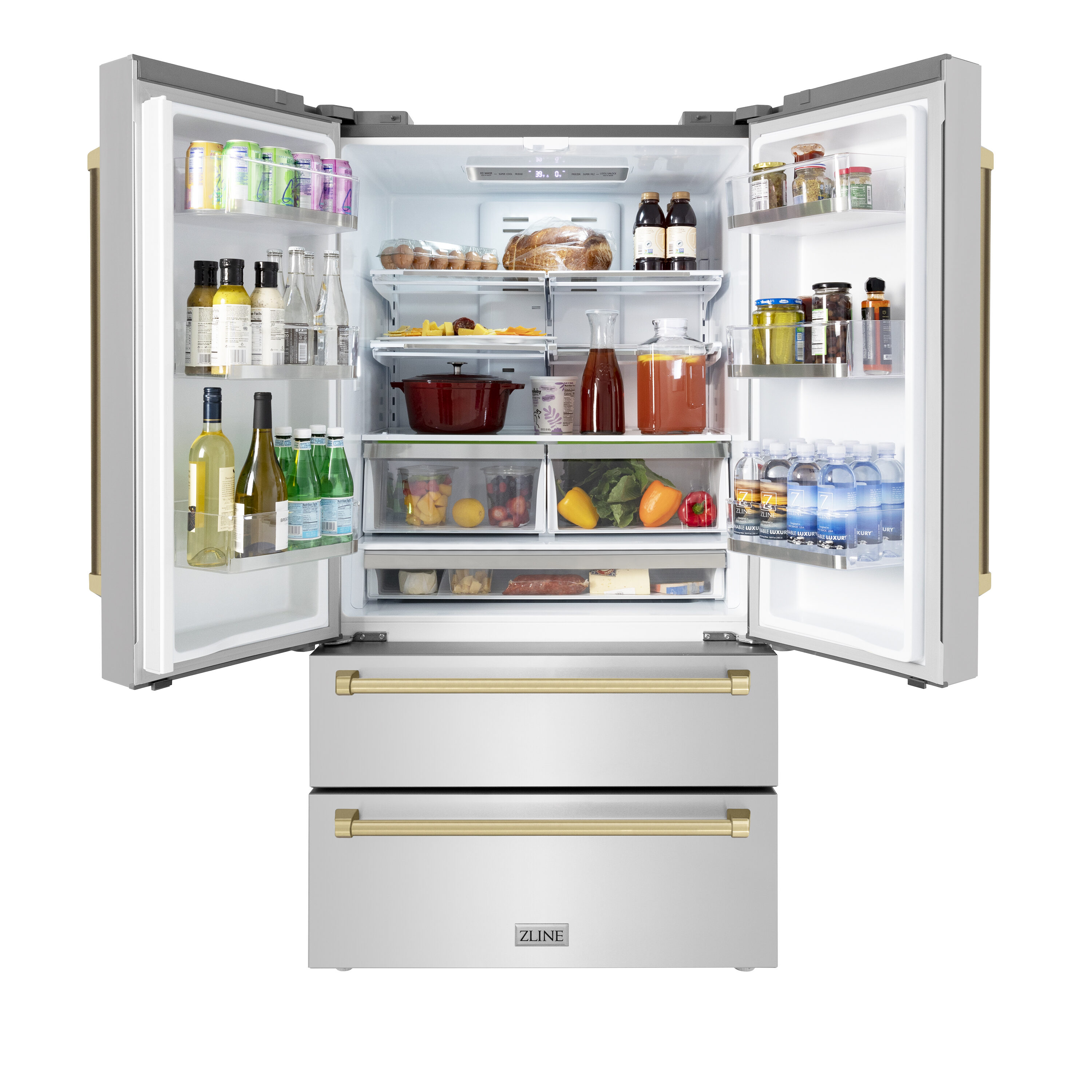 Crisper and Pantry Drawers – Enjoy best-in-class freshness for fruits and vegetables with a pair of half-width humidity-controlled crisper drawers, along with a full-width pantry drawer that provides additional space for deli meats, cheeses, and other food items for optimal storage